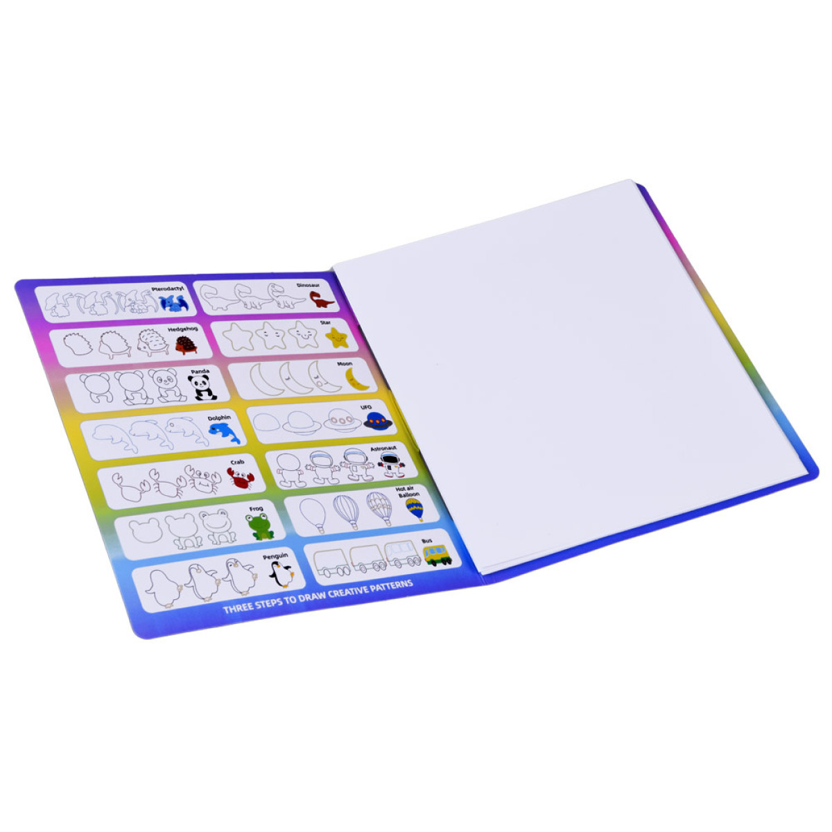 Šablonas padeda net pradedantiesiems mažiesiems menininkams sukurti gražius ir spalvingus piešinius. 18 lapų dydis – 20,5 x 18,5 cm, todėl jų pakanka daugeliui kūrybinių idėjų.