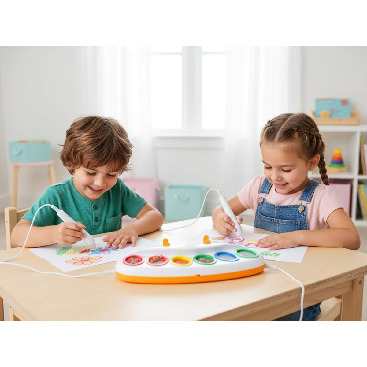 Popierius reaguoja į LED teptuko šviesą, todėl spalvos atsiranda be dažų, vandens ir rašalo. Tereikia perbraukti teptuku per lapo paviršių, ir netrukus pasirodo spalvos bei raštai. Tai patogus ir švarus būdas kurti, kuris vaikams suteikia daug džiaugsmo.