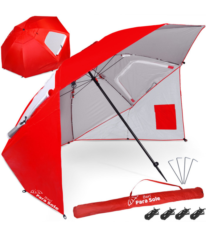 Paplūdimio skėtis Bari Para Sole UPF 50+ rūpinasi jūsų komfortu. Skėtis turi du langus su tinkleliais nuo uodų ir ventiliacijos angas, kurios užtikrina puikią oro cirkuliaciją. Be to, vidinės kišenės leidžia laikyti gėrimus, užkandžius ir kitus smulkius daiktus.