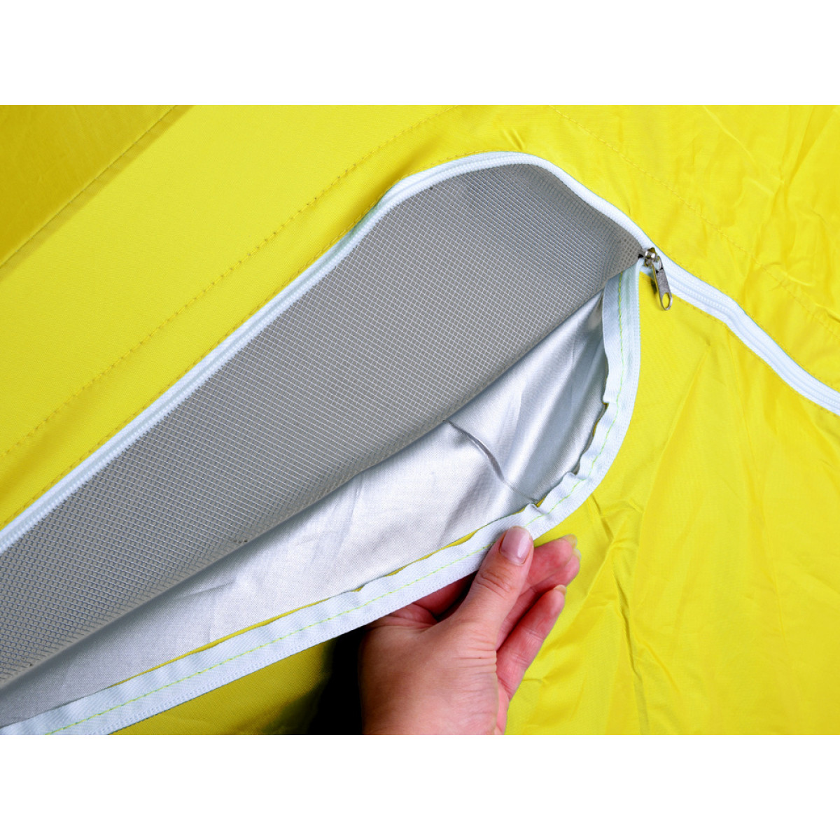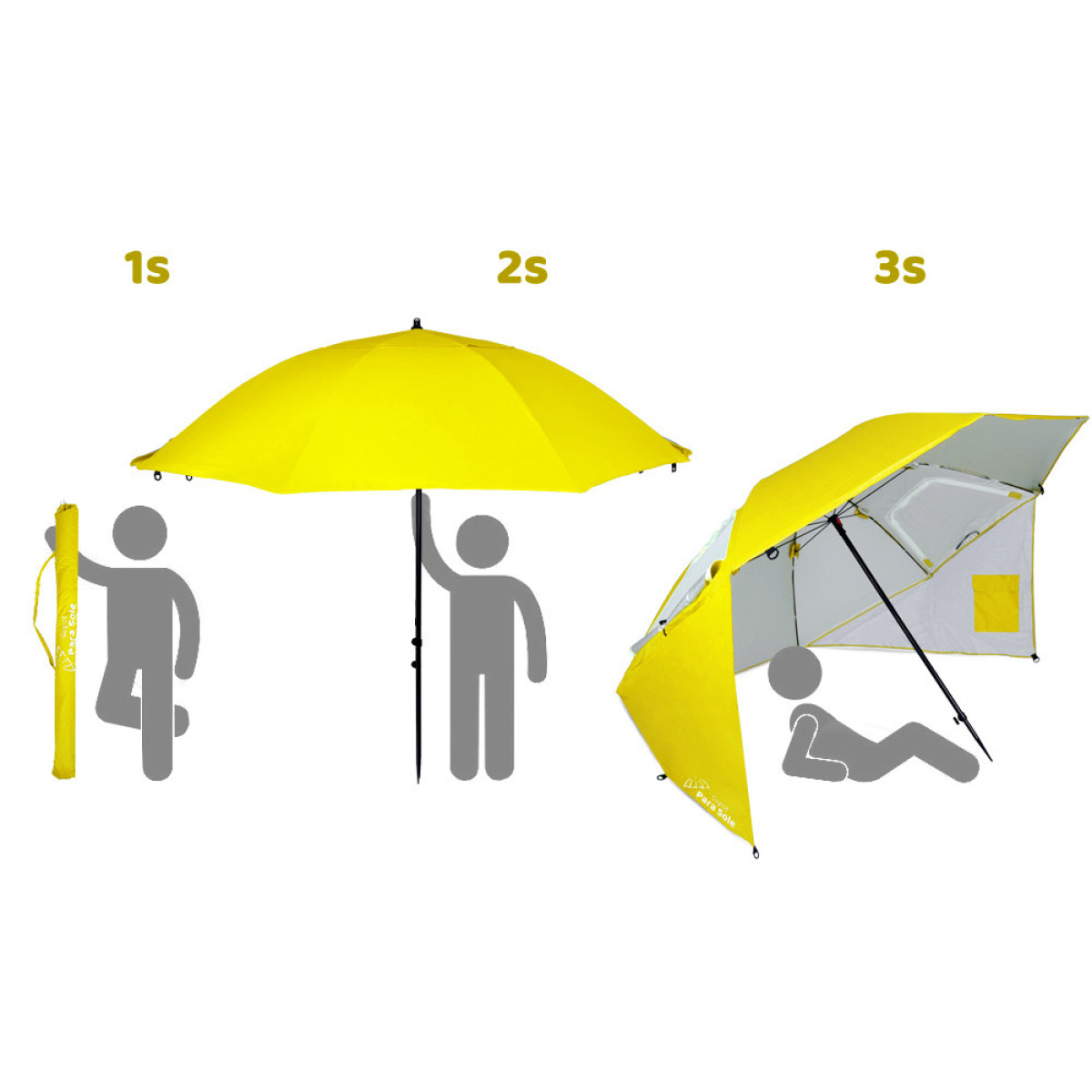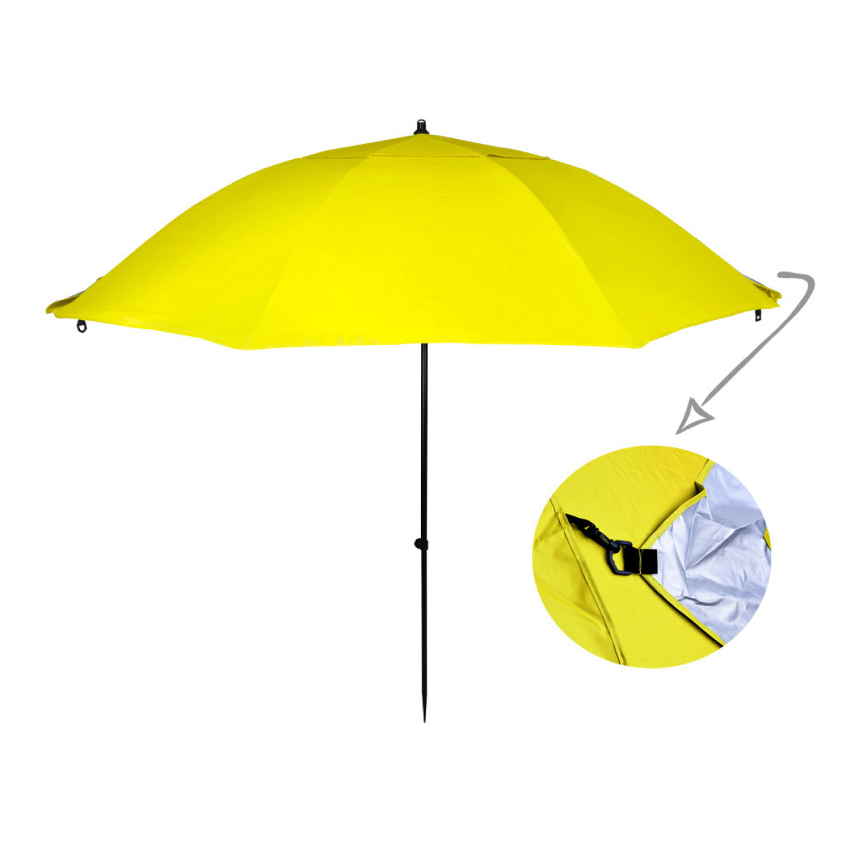 Šis geltonas paplūdimio skėtis yra būtinas palydovas karštomis dienomis, tiek paplūdimyje, tiek sode. Jis suteikia pavėsį, apsaugodamas nuo saulės ir nepalankių oro sąlygų. Dėl UPF 50+ apsaugos skėtis maksimaliai apsaugo nuo saulės spindulių ir lietaus.