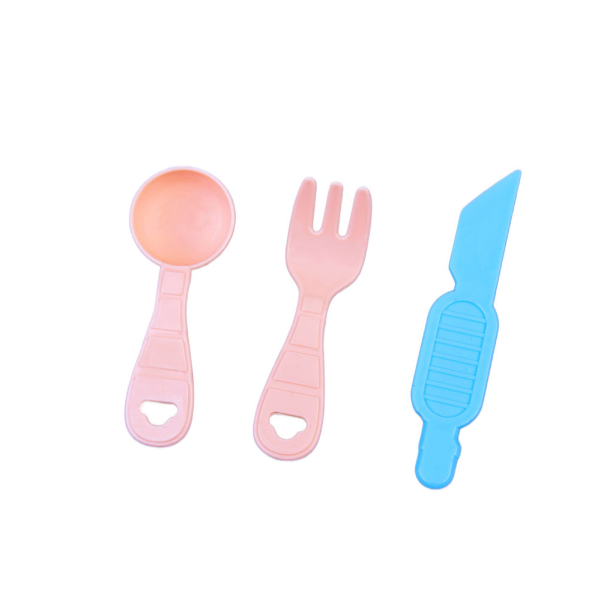 Kad žaidimas būtų dar įdomesnis, rinkinyje pridėti žaidimo priedai: kočėlas, lėkštutė, peiliukas, šakutė ir šaukštelis. Jie ne tik paįvairina veiklą, bet ir leidžia vaikui įsivaizduoti, kad jis ruošia valgį, pjausto, kočioja ir patiekia. Peiliukas taip pat puikiai tinka plastilino masei paskirstyti ir dėti į formeles.