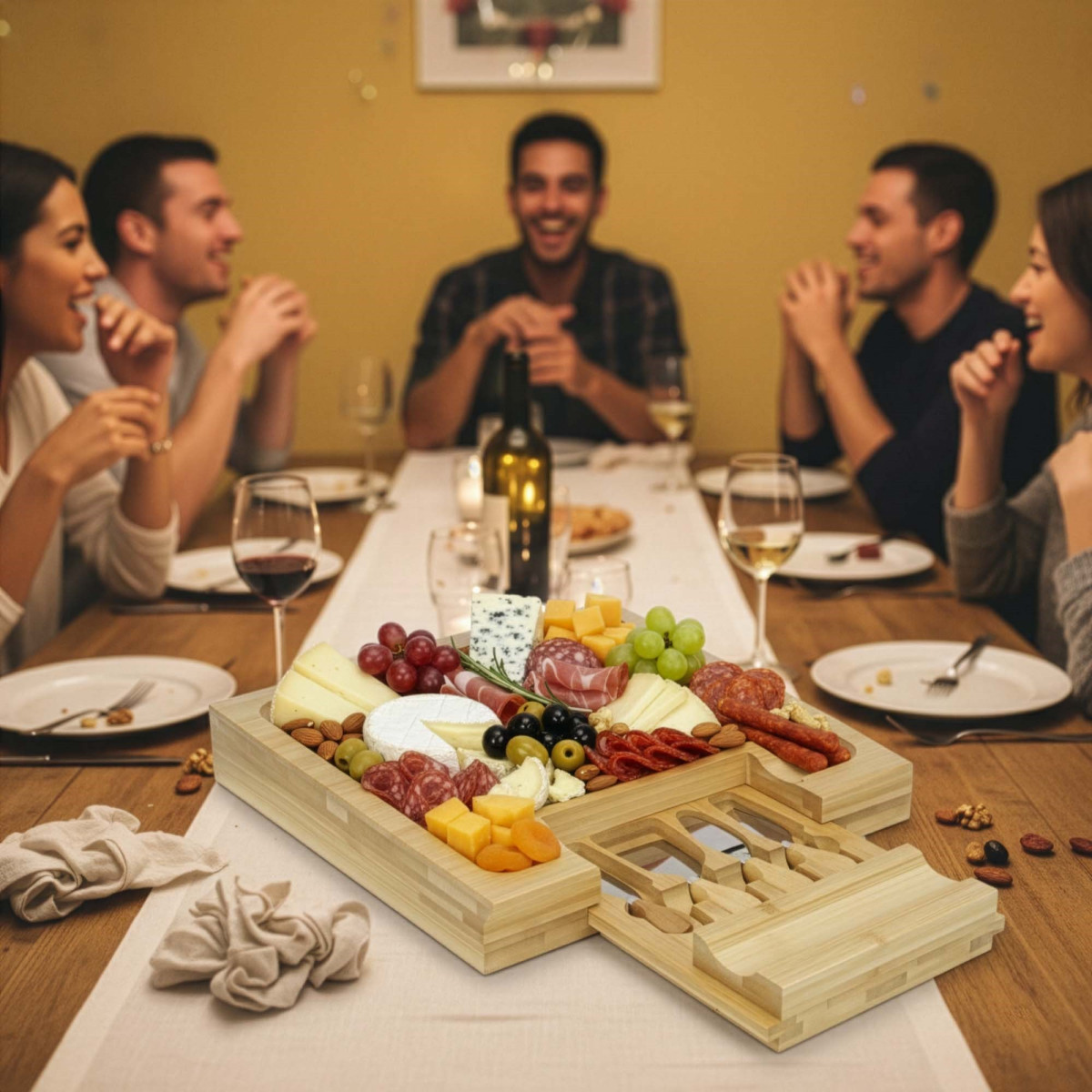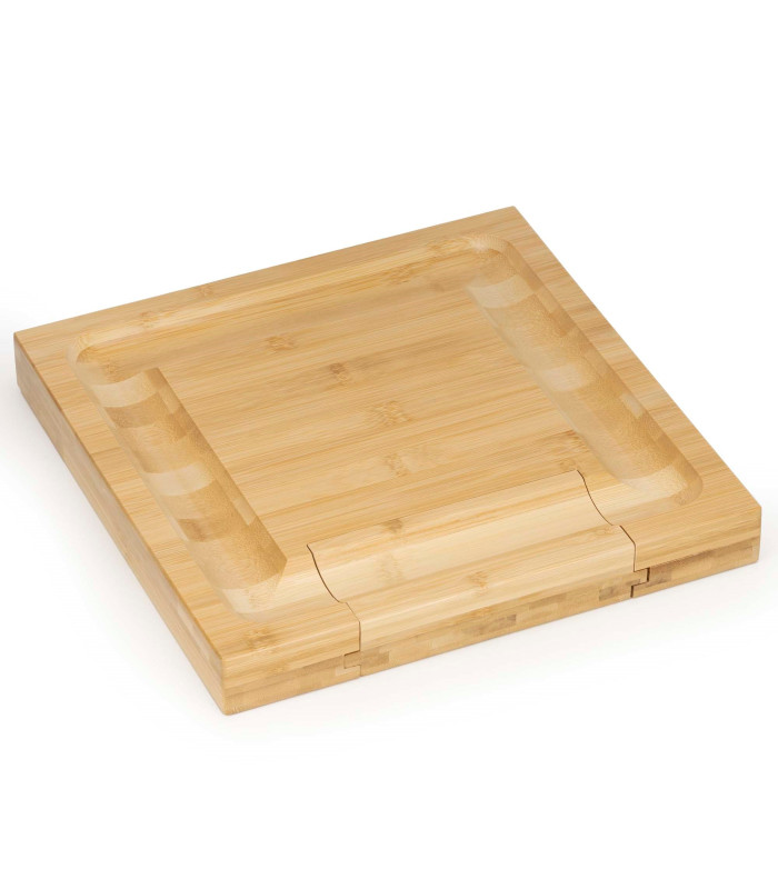 Prekės ženklas: Springos® Spalva: natūralus bambukas, sidabrinė Serviravimo lentos medžiaga: bambuko mediena Peilių ir šakučių medžiaga: nerūdijantis plienas Rankenų medžiaga: bambuko mediena Komplekte: 1 x serviravimo padėklas 1 x ištraukiamas stalčius 3 x sūrio peiliai 1 x sūrio šakutė Matmenys: Serviravimo padėklas Bendras plotis: 33 cm Bendras gylis: 33 cm Padėklo aukštis: 4 cm Griovelių plotis: 4.5 cm Griovelių gylis: 1 cm Šoninių kraštų plotis: 2 cm Kvadratinės platformos plotis: 19.5 cm Kvadratinės platformos ilgis: 19.5 cm Stalčiaus matmenys: 25 x 18.5 x 4 cm Lopetėlės peilis Bendras ilgis: 12 cm Ašmenų ilgis: 6 cm Ašmenų plotis: 4.5 cm Ašmenų storis: 0.1 cm Rankenos ilgis: 6 cm Rankenos plotis: 2.5 cm Rankenos storis: 1.5 cm Klasikinis peilis Bendras ilgis: 12.5 cm Ašmenų ilgis: 6.5 cm Ašmenų plotis: 2.5 cm Ašmenų storis: 0.1 cm Rankenos ilgis: 6 cm Rankenos plotis: 2.5 cm Rankenos storis: 1.5 cm Mini sūrio peilis Bendras ilgis: 12 cm Ašmenų ilgis: 6 cm Ašmenų plotis: 2.5 cm Ašmenų storis: 0.1 cm Rankenos ilgis: 6 cm Rankenos plotis: 2.5 cm Rankenos storis: 1.5 cm Sūrio šakutė Bendras ilgis: 12.5 cm Bendras ašmenų ilgis: 6.5 cm Bendras ašmenų plotis: 2 cm Ašmenų storis: 0.1 cm Rankenos ilgis: 6 cm Rankenos plotis: 2.5 cm Rankenos storis: 1.5 cm Atstumas tarp dantų: apie 0.8 cm Vieno danties plotis: 0.5 cm Vieno danties ilgis: 4.5 cm Papildoma informacija: Stalčius išsitraukia 17 cm, suteikdamas lengvą prieigą prie peilių Produktas tinkamas sąlyčiui su maistu Komplekte yra vidutinio aštrumo peiliai