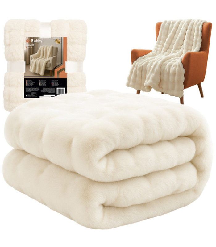 Minkšta ir jauki antklodė Ruhhy apsupa jūsų šiluma, kai tik norite atsipalaiduoti. Jos aksominė tekstūra ir universalus baltas atspalvis puikiai dera bet kurioje miegamojo ar svetainės interjero aplinkoje kaip pledas, užklotas ar sofų dekoracija. Pagaminta iš 100% poliesterio, lengvai prižiūrima ir ilgaamžė, ši antklodė tarnaus jums daugelį metų.