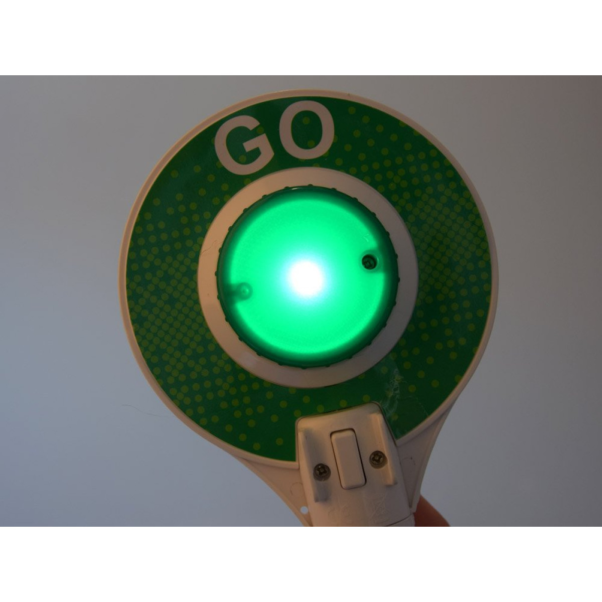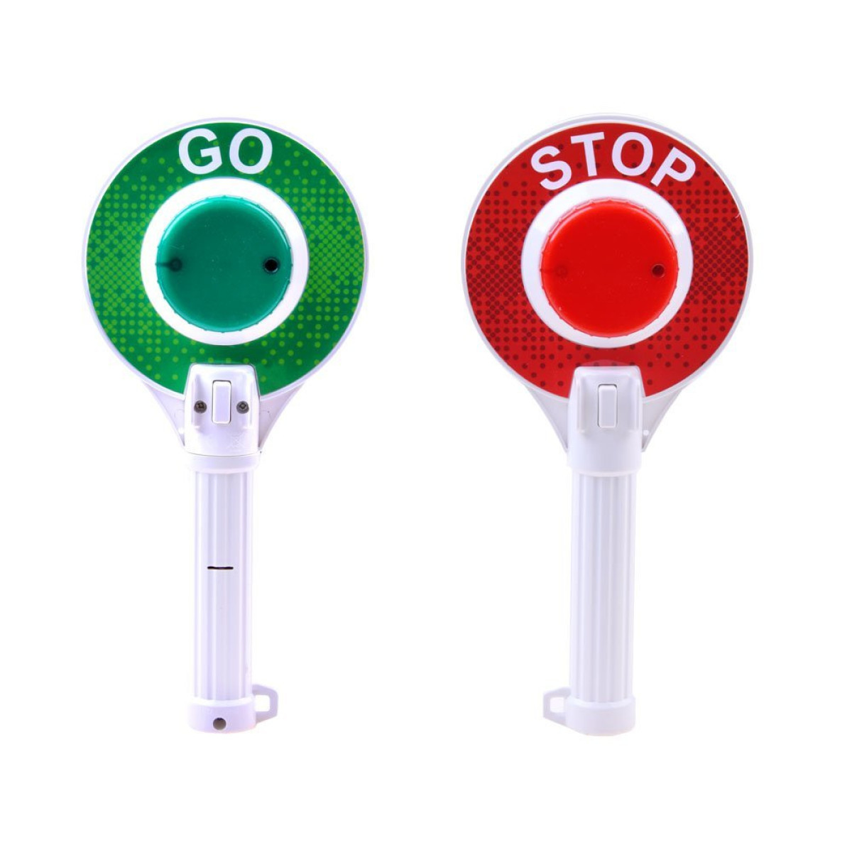 - Dviejų pusių dizainas – viena pusė su žaliu ženklu „GO“, kita – su raudonu „STOP“, puikiai tinka šviesoforo signalų atpažinimui.