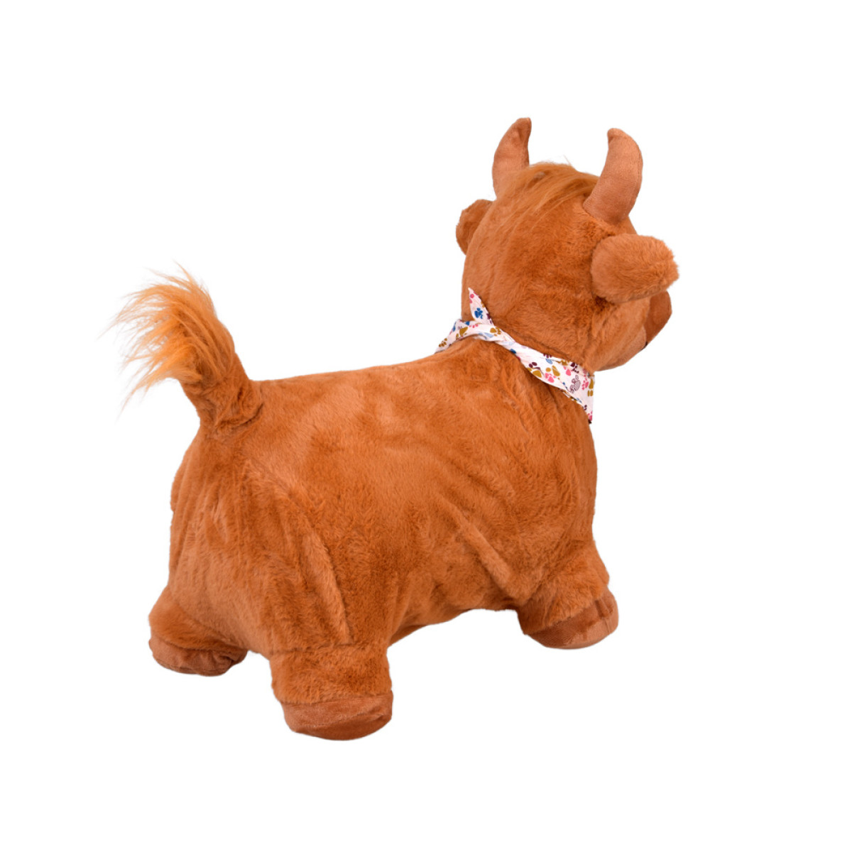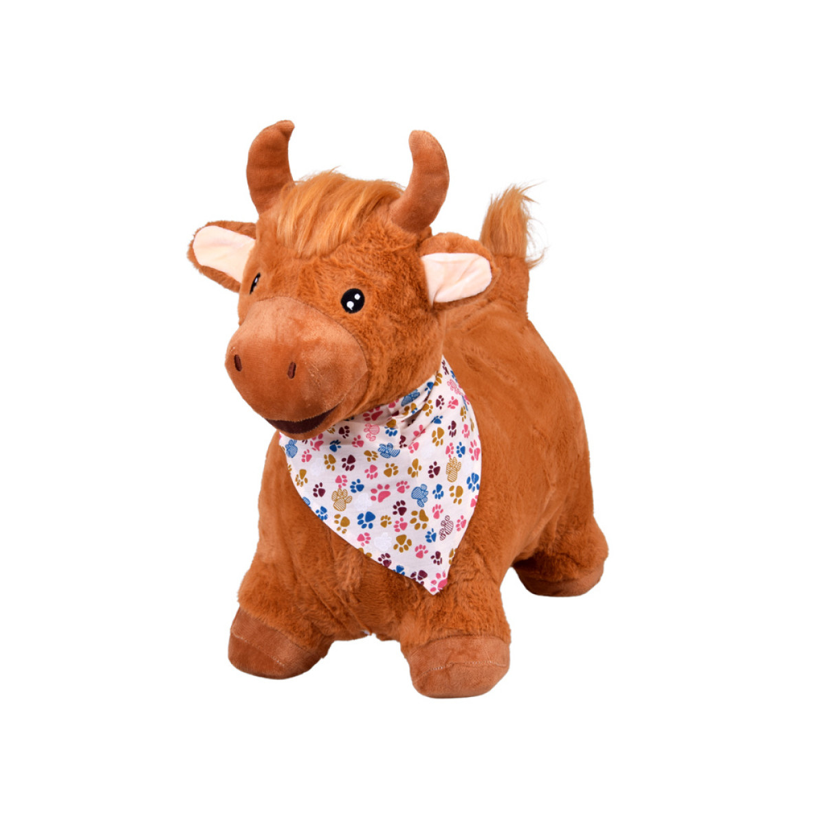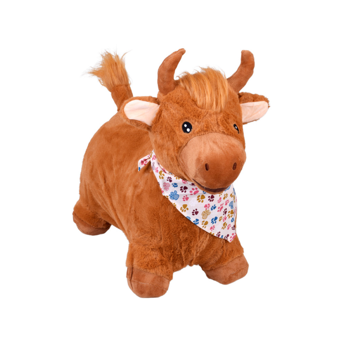 Pliušinis šokinėjantis jautukas su šalikėliu ir pompa