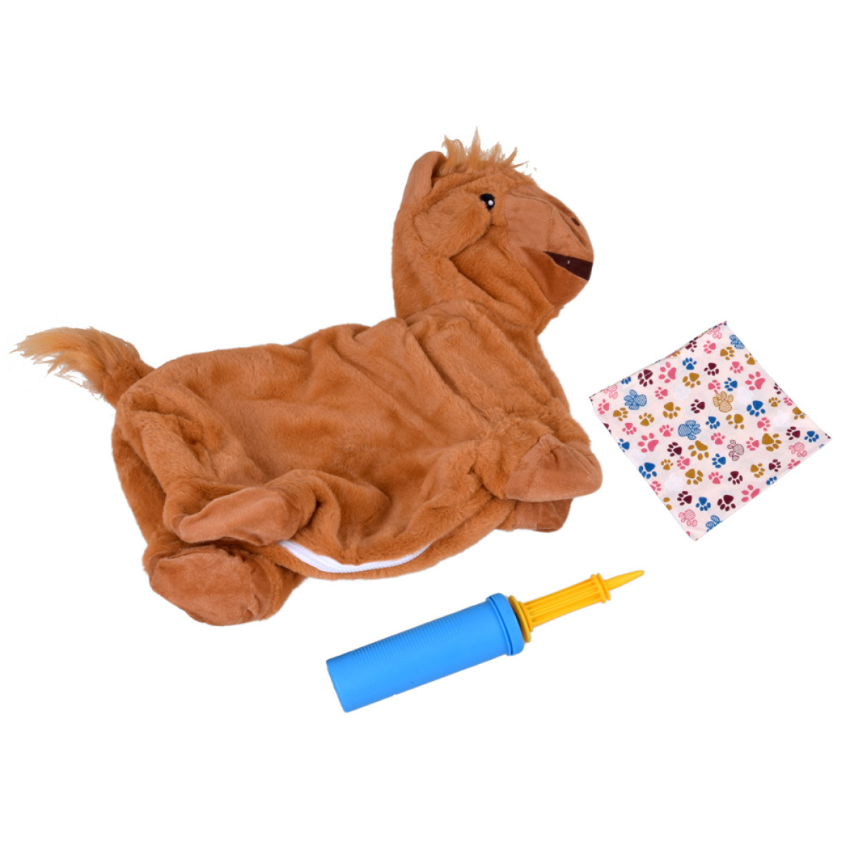 Šis pliušinis, minkštas rudas jautukas su šypsena, ragais, išsisklaidžiusiais karčiais ir „palmu“ ant uodegos yra puikus draugas šokinėjimui. Tiesiog atsukite užtrauktuką ant pilvo, ištraukite adatą ir pripūskite jį pridėta pompa. Jautukas iškart bus pasiruošęs jūsų šuoliams! Be to, dėžutėje rasite ir šviesų šalikėlį su spalvotomis pėdutėmis, kuris dar labiau papuoš šį smagų draugą.