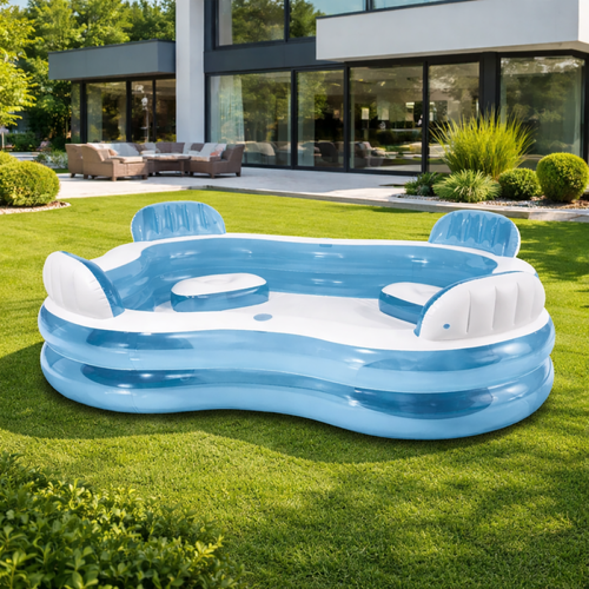 INTEX pripučiamas baseinas su sėdynėmis – patogus pasirinkimas sodui, kiemui ar terasai. Jis padeda greitai sukurti jaukią poilsio vietą karštomis vasaros dienomis. Baseinas turi 4 įmontuotas sėdynes su atlošais, todėl patogiai ilsėtis gali visa šeima. Jį paruošite naudoti maždaug per 10 minučių.