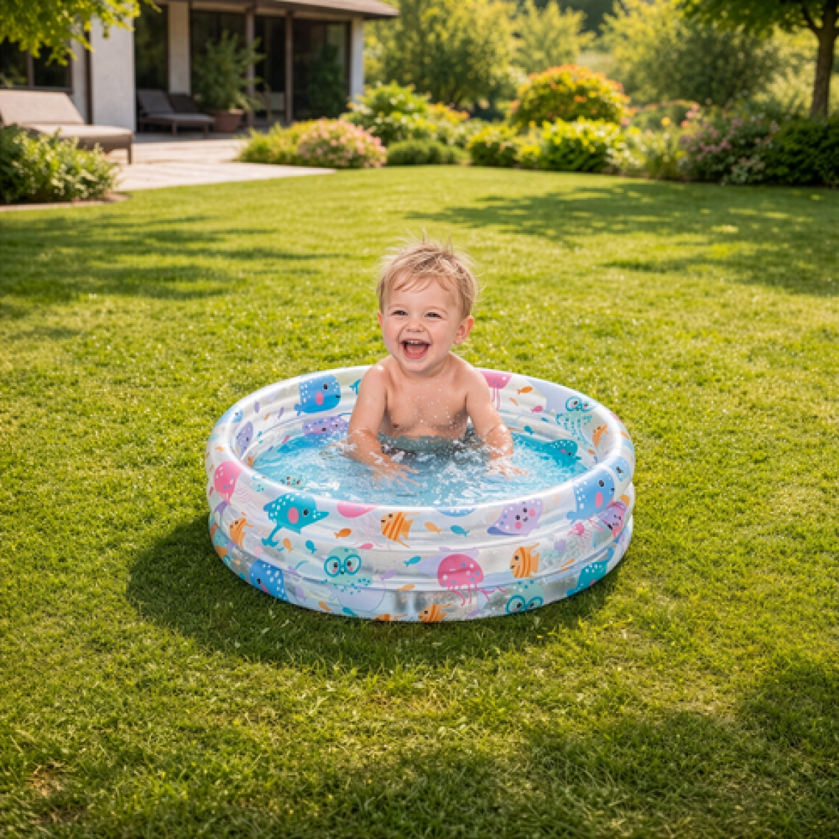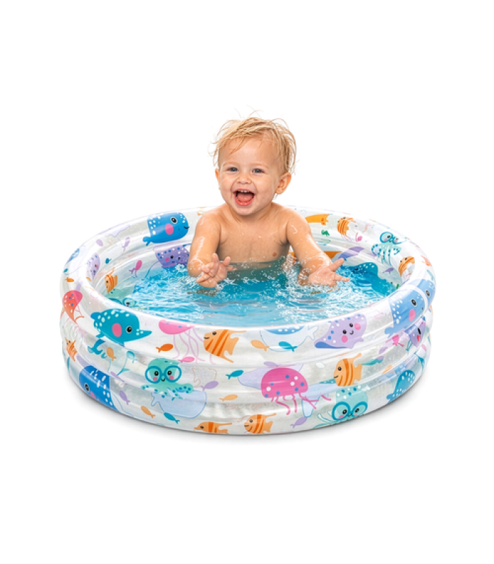 Saugesnis pasirinkimas mažyliui – nedidelis aukštis ir talpa tinka pirmiesiems vandens žaidimams, kai vaikas prižiūrimas suaugusiojo.