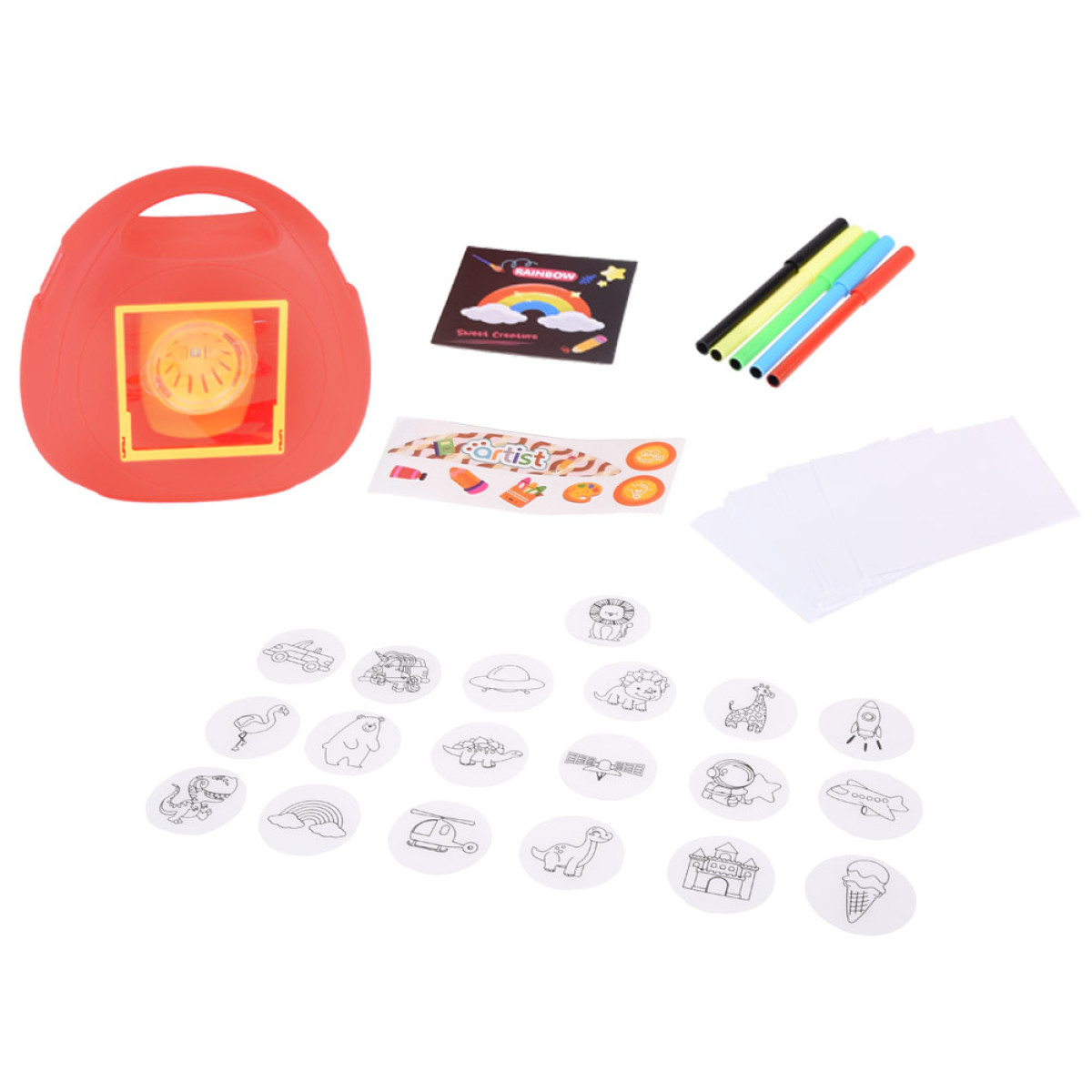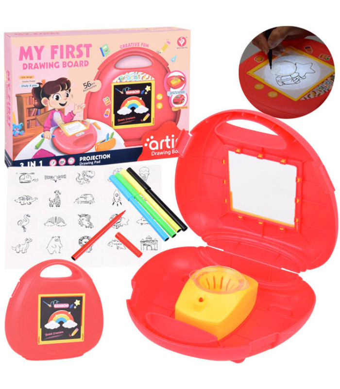 Projektorius yra puikus pasirinkimas vaikams, mėgstantiems užsiimti menine veikla. Supakuotas į lagaminą, jis gali būti lengvai perkeliamas į bet kurią vietą. Projektorius turi net 20 skirtingų vaizdų, kuriuos galima rodyti ant popieriaus ar sienos, todėl jis patrauks kiekvieno vaiko dėmesį. Vaizdus galima rodyti ant popieriaus ar sienos, pasakojant įvairias istorijas. Projektorius gali būti naudojamas kaip priemonė rodyti nuotraukas, pavyzdžiui, gyvūnus, transporto priemones, ant popieriaus ar sienos vakare. Projektorius yra gražiai pagamintas ir suteiks daug džiaugsmo žaidžiant.