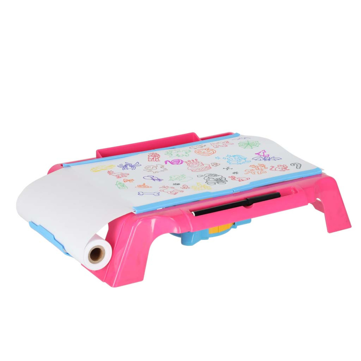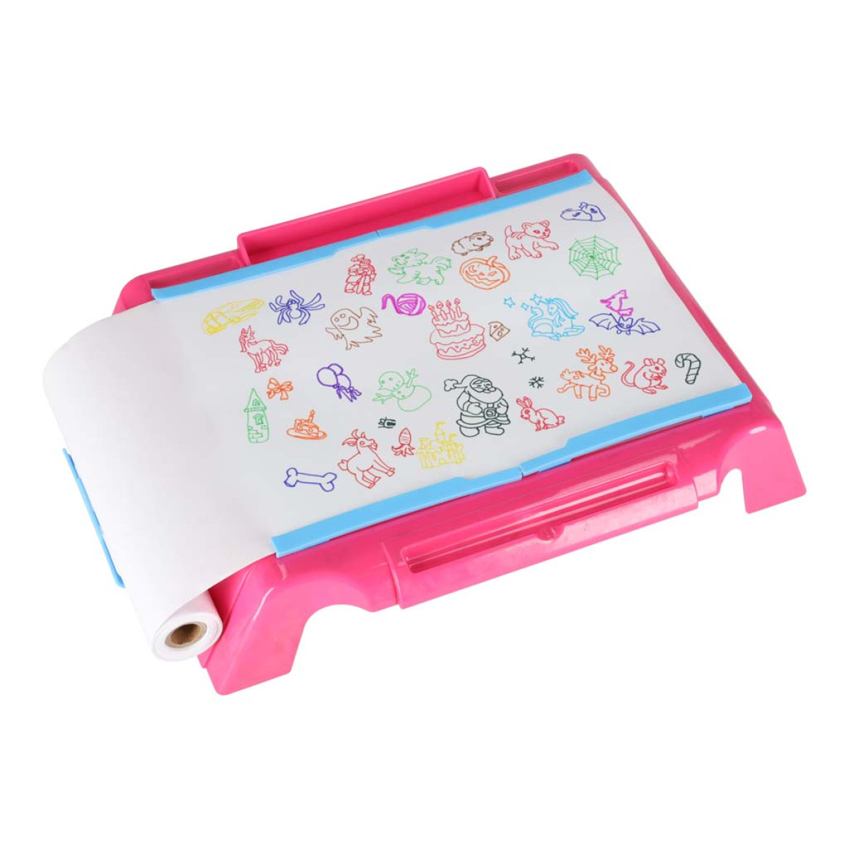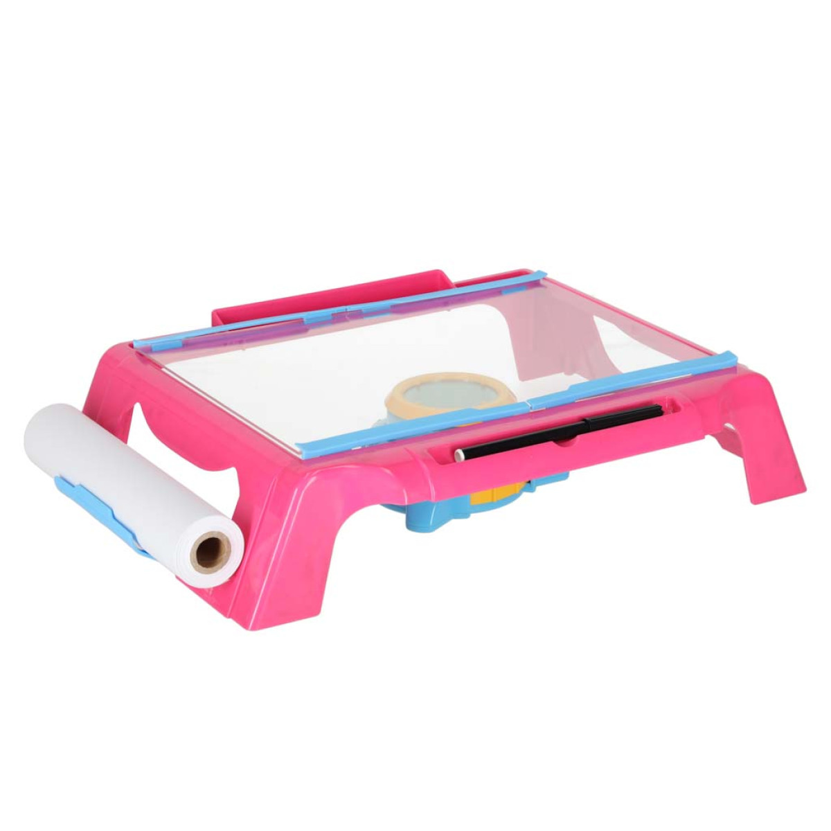 Šis spalvingas staliukas su projektoriumi yra patogi ir saugi vieta mažiesiems menininkams. Dėka staliuko vaikas gali kurti bet kur - kambaryje, svetainėje ar net sode. Rinkinyje rasite viską, ko reikia: piešimo popieriaus ritinėlį, 12 spalvotų flomasterių, piešimo priedų rinkinį bei paruoštus šablonus, kurie palengvina pradžią. Žaidimas su rinkiniu yra vaikiškai paprastas - įdėkite skaidrę, sureguliuokite ryškumą ir leiskite vaizduotei veikti!