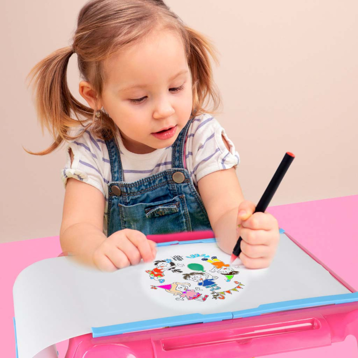 Šis piešimo staliuko rinkinys yra tikras kūrybos centras! Dėka žavaus edukacinio projektoriaus ir jo švelnios šviesos, vaikui mokantis piešti lydi magija ir džiaugsmas. Piešimas vysto rankų įgūdžius, skatina vaikų kūrybiškumą ir žadina meninį smalsumą.
