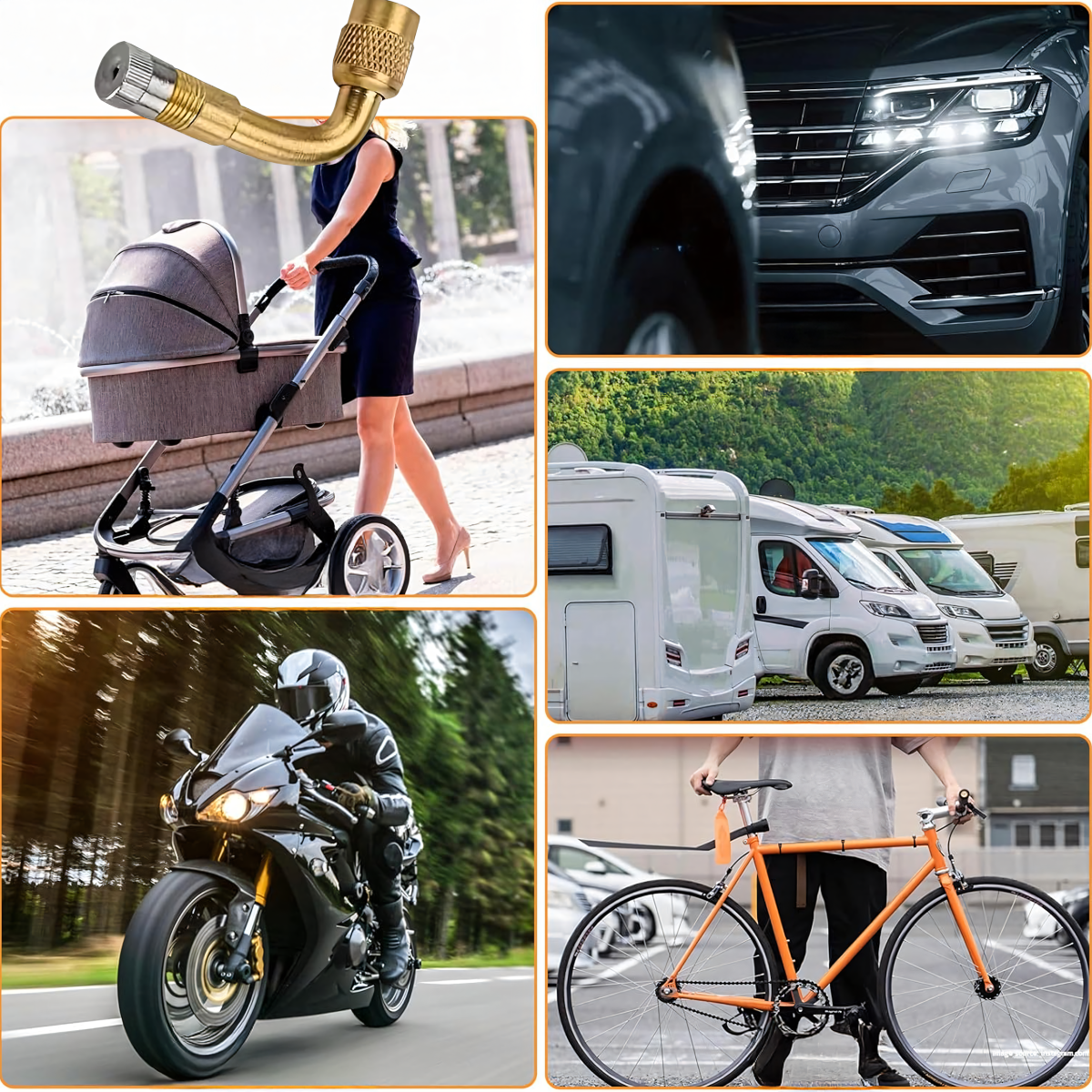 Šis praktinis ir tvirtas priedas palengvina prieigą prie sunkiai pasiekiamų vožtuvų. Idealiai tinka padangų pripūtimui ir slėgio kontrolei dvigubuose komercinių automobilių, sunkvežimių, dviračių, motociklų ir autobusų ratuose.