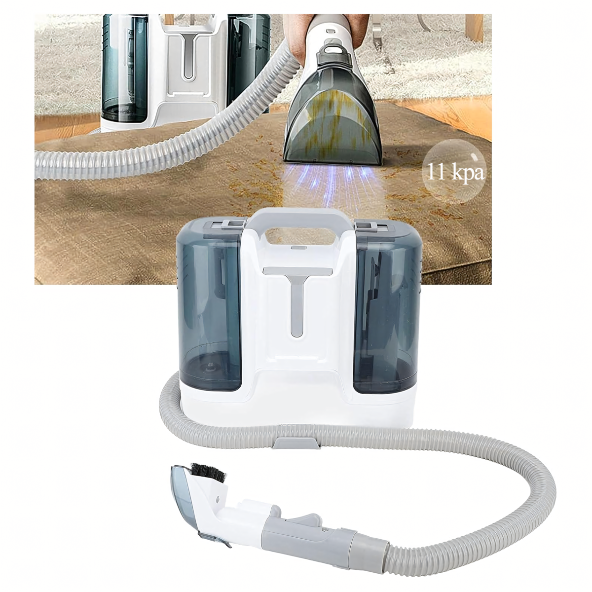 Šis nešiojamas plaunantis dulkių siurblys yra nepakeičiamas prietaisas kilimų, apmušalų, sofų ir automobilinių sėdynių valymui. Dėl galingo 11 kPa siurbimo, dvigubų vandens rezervuarų ir šepetėlių rinkinio efektyviai pašalina dėmes, purvą ir dulkes – net sunkiai pasiekiamose vietose.