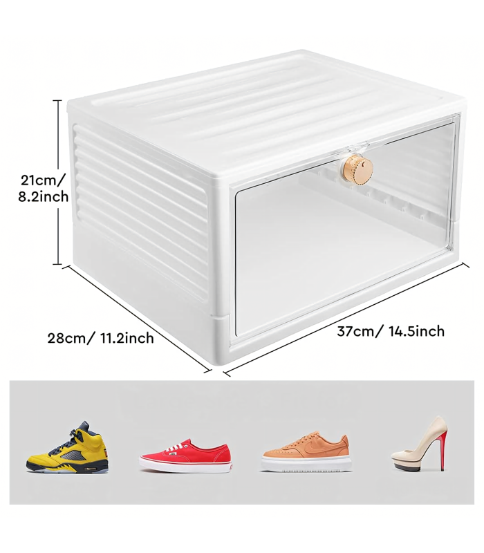 Ši dėžė yra idealus sprendimas tvarkai palaikyti spintoje ar drabužinėje. Ji apsaugo avalynę nuo dulkių ir drėgmės, o dėka modulinės konstrukcijos, galite susikurti savo batų lentyną. Galite ją sulankstyti, kai nenaudojate, taip taupydami vietą.