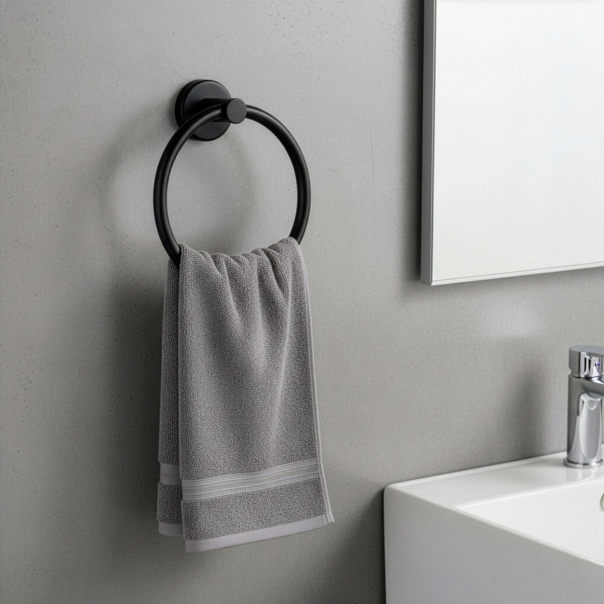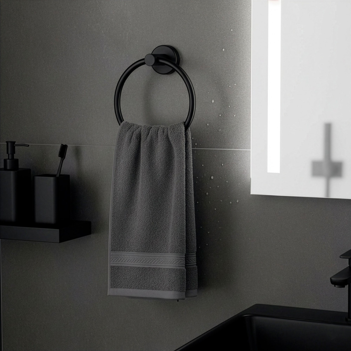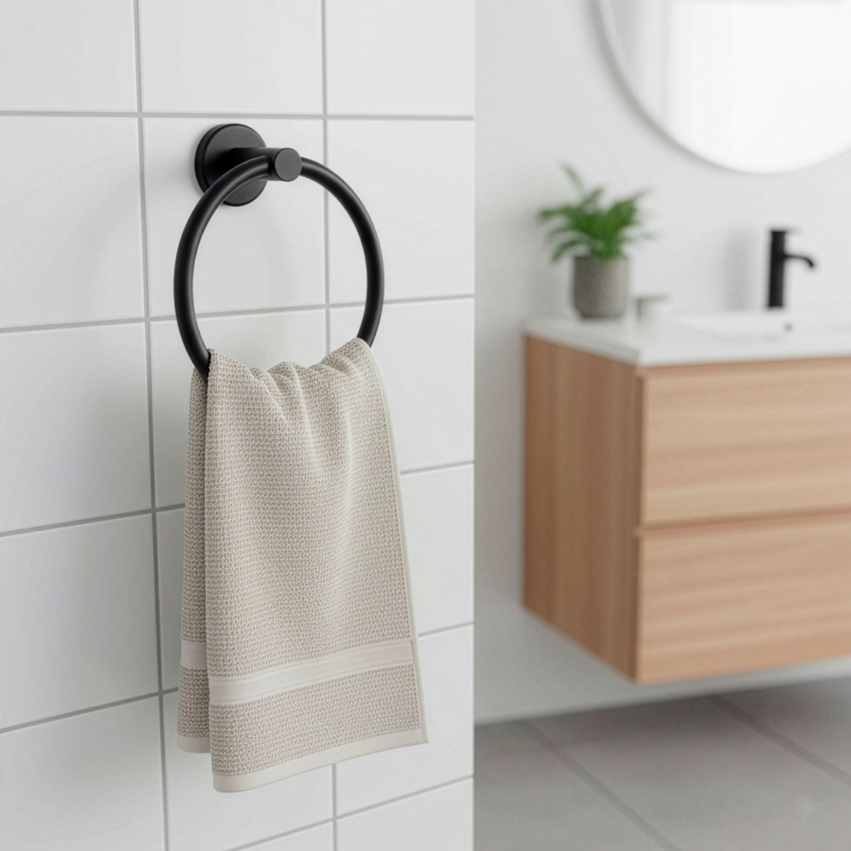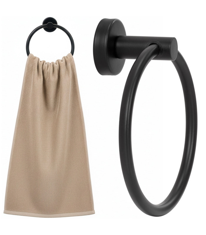 Prekės ženklas: Springos® Spalva: juoda Apdaila: matinė Medžiaga: nerūdijantis plienas Maksimali apkrova: 3 kg Matmenys: Žiedas Vidinis skersmuo: 14 cm Išorinis skersmuo: 16.5 cm Rėmo storis: 1 cm Atstumas nuo sienos: 5 cm Rankena Bendras ilgis: 5.5 cm Ilgis nuo žiedo iki pagrindo: 3.5 cm Storis: 2 cm Tvirtinimo pagrindas: Skersmuo: 5.5 cm Storis: 1.5 cm Papildoma informacija: Atsukite dangtelį, atlaisvinkite mažą varžtą pagrindo šone, prisukite vidinę dalį prie sienos, uždėkite laikiklį ir priveržkite varžtą, kad viską pritvirtintumėte. Komplekte: 2 tvirtinimo kaiščiai 2 varžtai mažas šešiakampis raktas