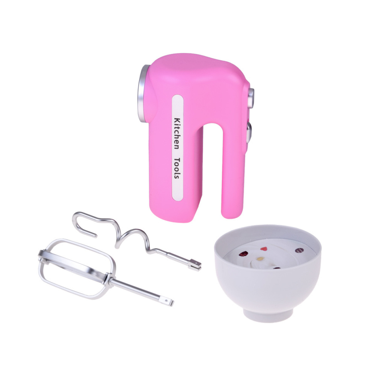 Rožinis interaktyvus mikseris su dviem antgaliais ir dubeniu