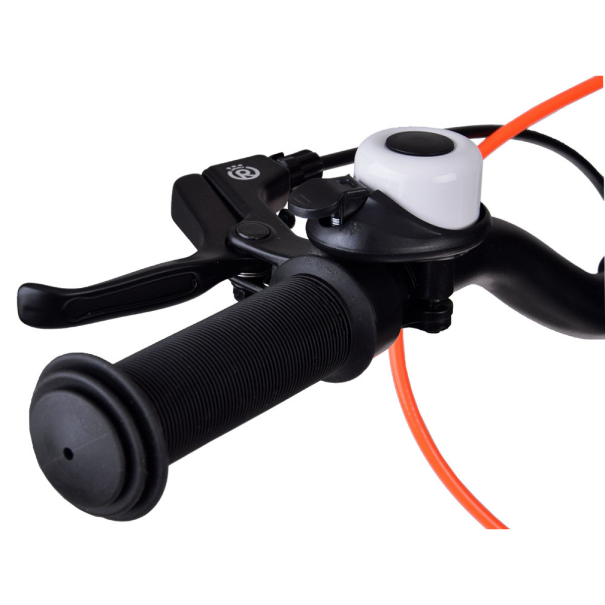 - Saugūs stabdžiai: Aliumininiai v-brake tipo stabdžiai siūlo tinkamą stabdymo galią, o ergonomiškos rankenos, pritaikytos vaikų rankoms, yra lengvai naudojamos. Oranžinis galinio stabdžio kabelio apvalkalas palengvina saugaus stabdymo mokymąsi.