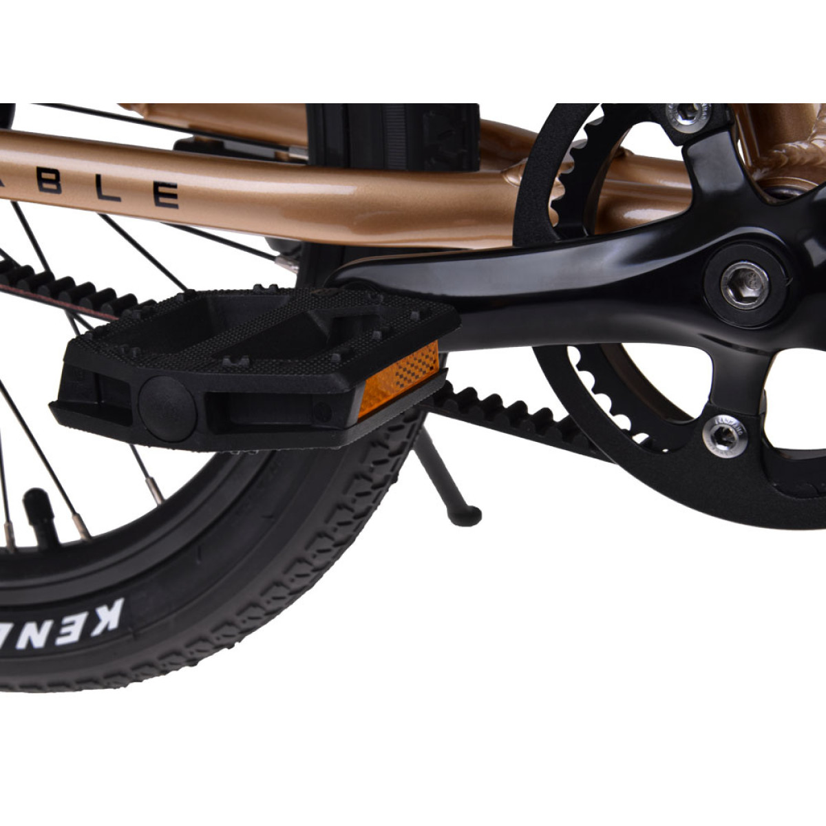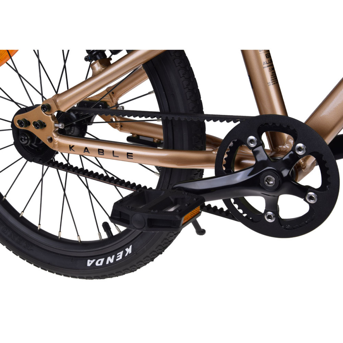 - Lengvas ir tvirtas rėmas: Pagamintas iš aliuminio Alu6061 vamzdžių, užtikrina išskirtinį patvarumą ir stabilumą. Specialus galinis trikampis leidžia naudoti modernią diržo pavarą, garantuojančią sklandžią ir tylą važiuoti.