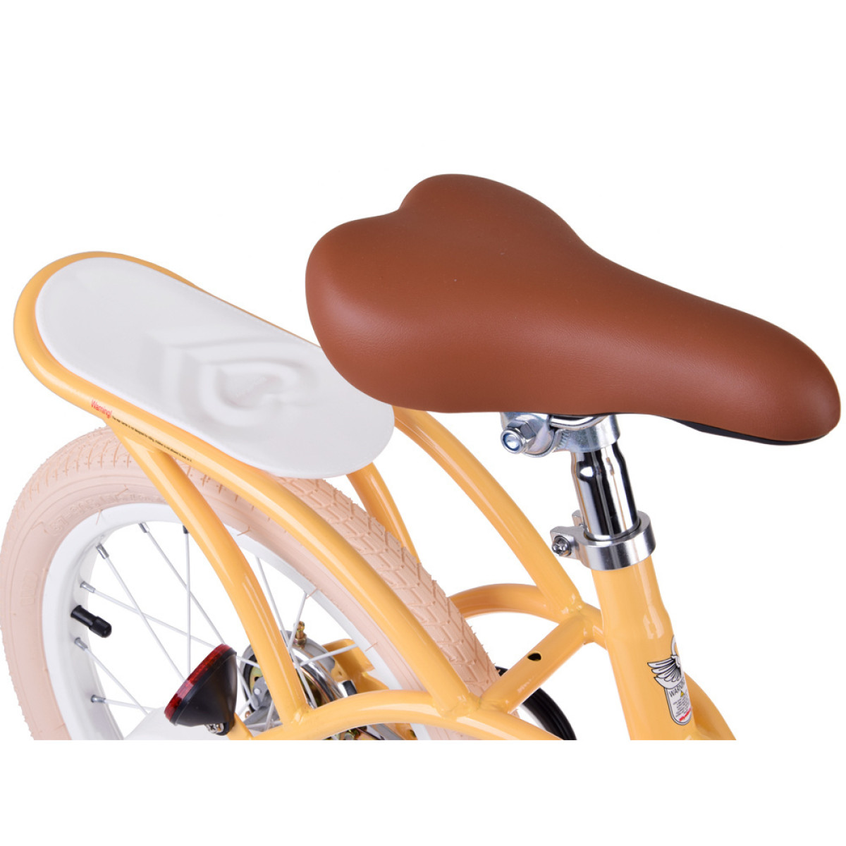 - Patogi sėdynė - putplastinė, pritaikyta vaikų anatomijai, reguliuojama, kad būtų lengviau priderinti prie vaiko ūgio. Ruda sėdynė dera su visa dviračio išvaizda.