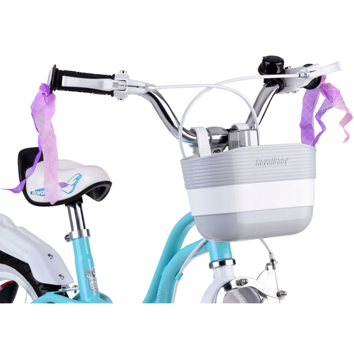 RoyalBaby Little Swan dviratis 14 colių yra puikus pasirinkimas mažoms mergaitėms, pradedančioms važinėti dviračiu! Šis išskirtinis modelis derina gražų dizainą su inovatyviais sprendimais, užtikrinančiais komfortą ir saugumą. Dviratis yra turkio spalvos su lengvu blizgesiu, dekoruotas krepšeliu ir kaspinėliais.