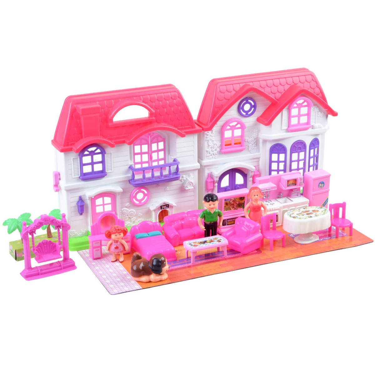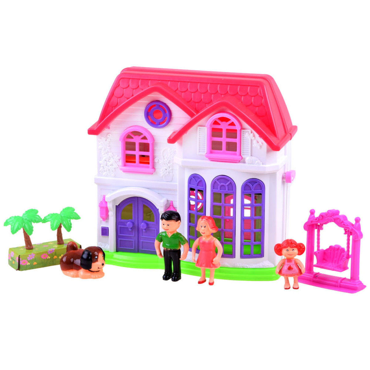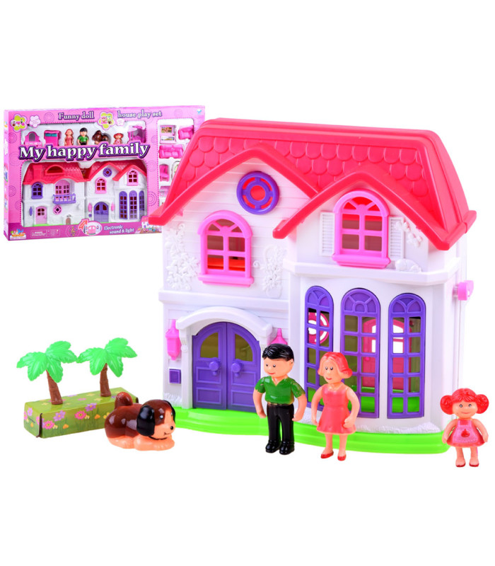 Elegantiškas šeimos namelis lėlėms suteiks vaikams nuostabų žaidimo laiką. Rinkinys yra pagamintas iš spalvingo ir patrauklaus plastiko, su efektyvia namelio apdaila. Namelis yra išskleidžiamas, su dailiomis gėlių ir paukščių reljefinėmis detalėmis fasade. Vaikai gali sukurti individualų kambario dizainą kiekviename aukšte, naudodamiesi rinkinyje esančiomis lipdukais ir įvairiais baldais. Papildomas privalumas yra durų skambutis su šviesos efektu, kuris praneša, kai kas nors įeina į namelį. Lėlių figūrėlės turi judančias rankas ir besisukančią galvą, jos yra spalvingai aprengtos.