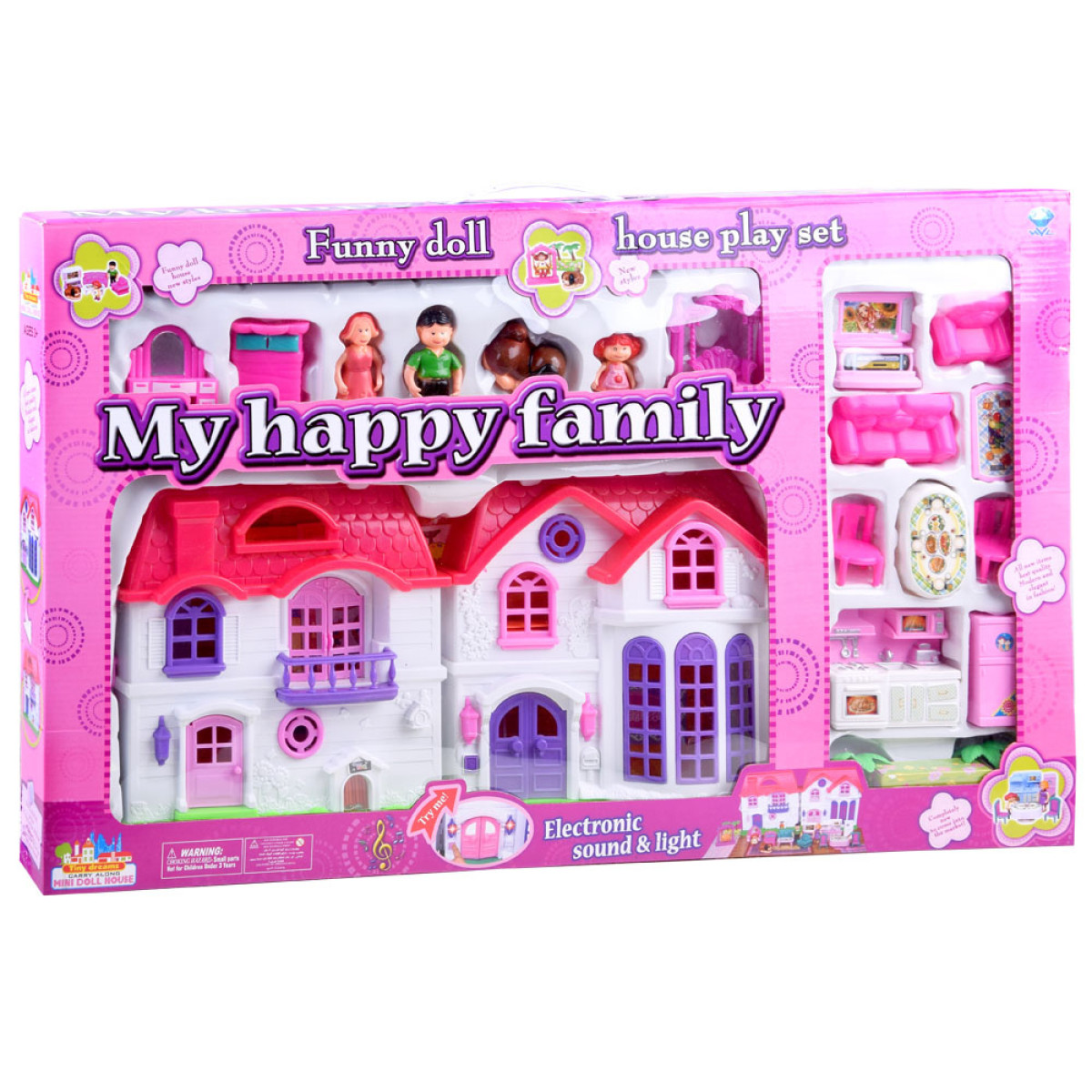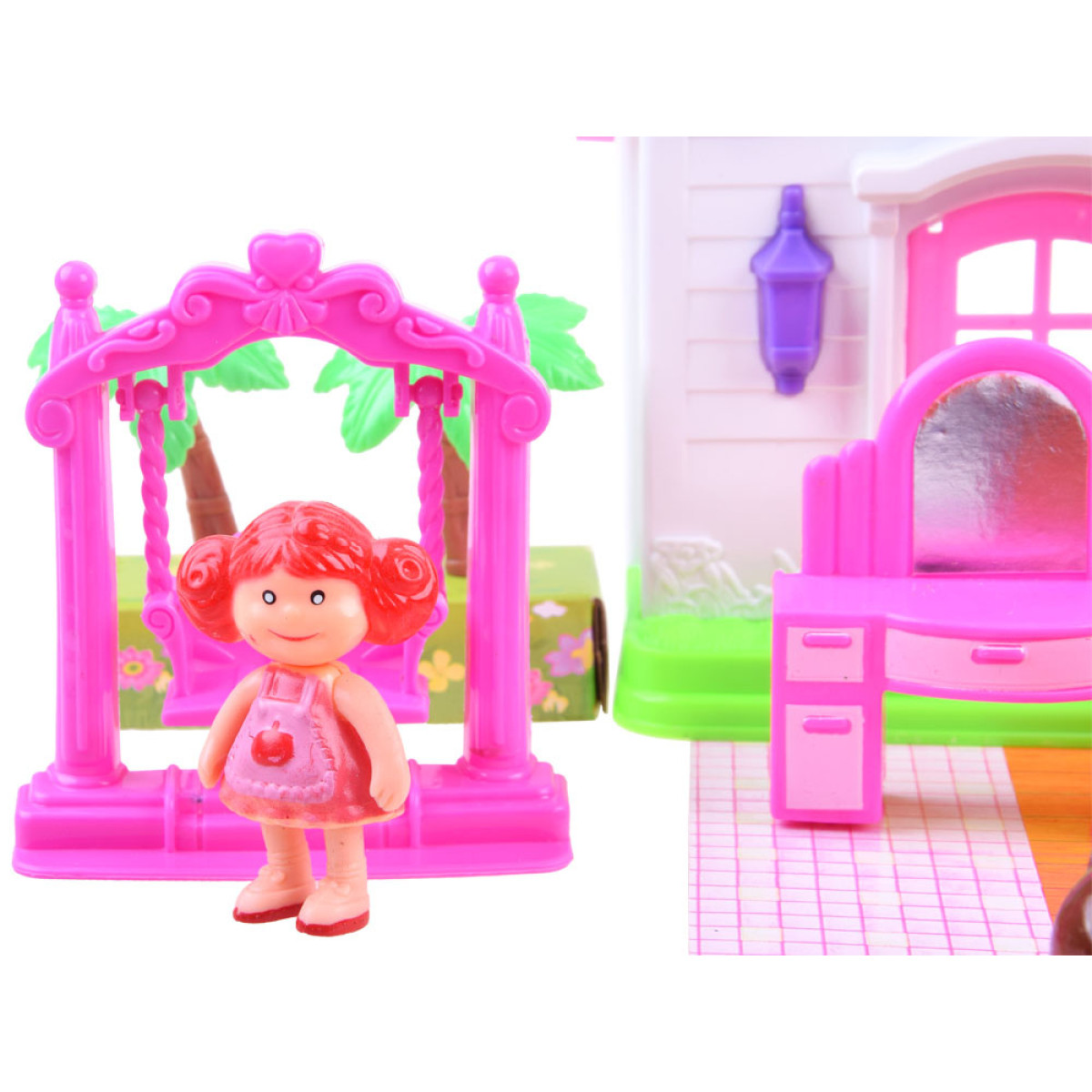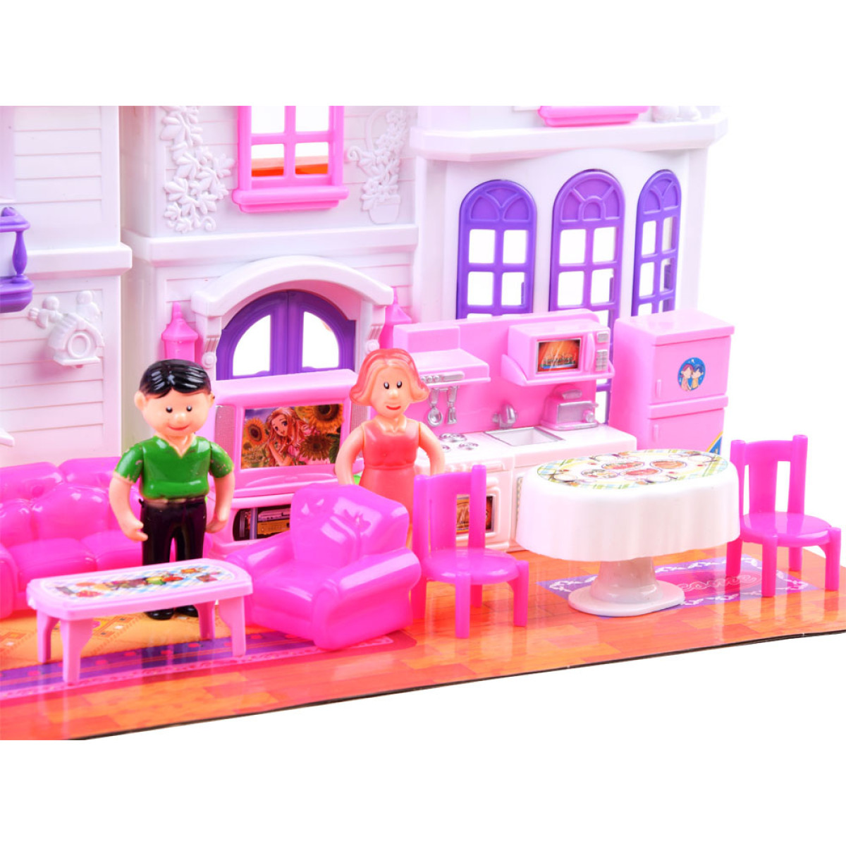 Elegantiškas šeimos namelis lėlėms suteiks vaikams nuostabų žaidimo laiką. Rinkinys yra pagamintas iš spalvingo ir patrauklaus plastiko, su efektyvia namelio apdaila. Namelis yra išskleidžiamas, su dailiomis gėlių ir paukščių reljefinėmis detalėmis fasade. Vaikai gali sukurti individualų kambario dizainą kiekviename aukšte, naudodamiesi rinkinyje esančiomis lipdukais ir įvairiais baldais. Papildomas privalumas yra durų skambutis su šviesos efektu, kuris praneša, kai kas nors įeina į namelį. Lėlių figūrėlės turi judančias rankas ir besisukančią galvą, jos yra spalvingai aprengtos.