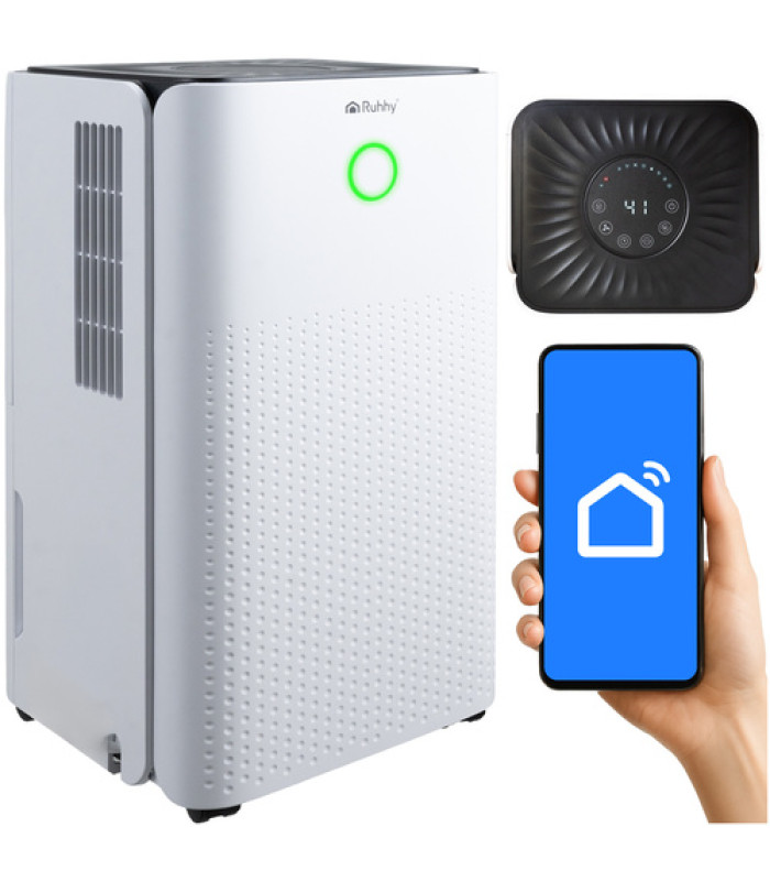 RUHHY oro sausintuvas, galingas kondensacinis, efektyvus drėgmės sugėriklis, 12 l/24 val., higrostatas, laikmatis, WiFi valdymas!