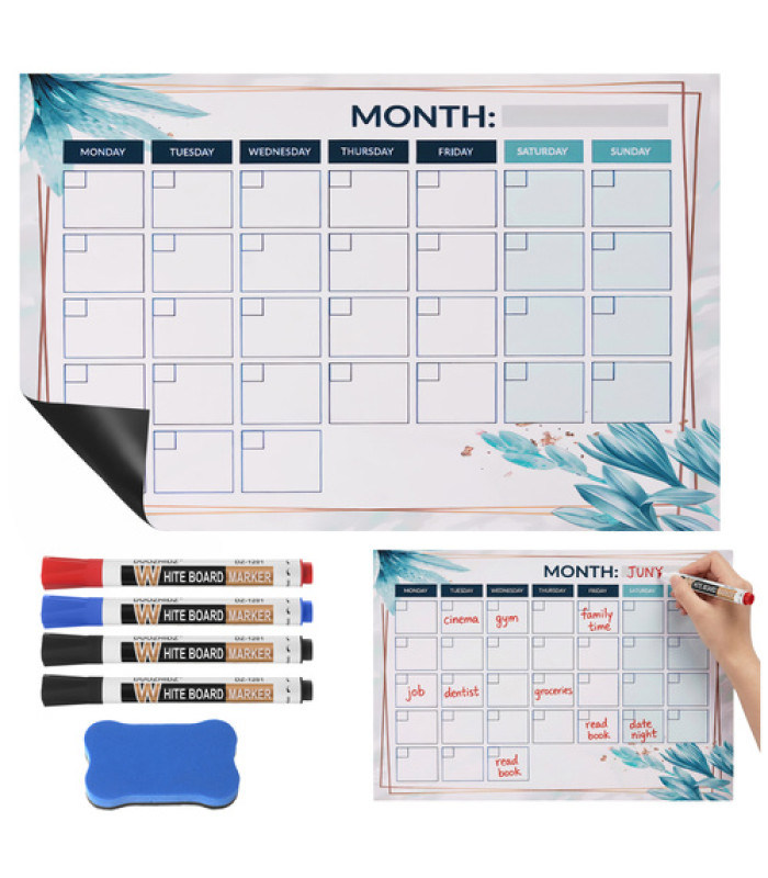 RUHHY magnetinis šaldytuvo planavimo įrenginys, 30x40 cm, didelis, sausai valomas, kasdienis kalendorius