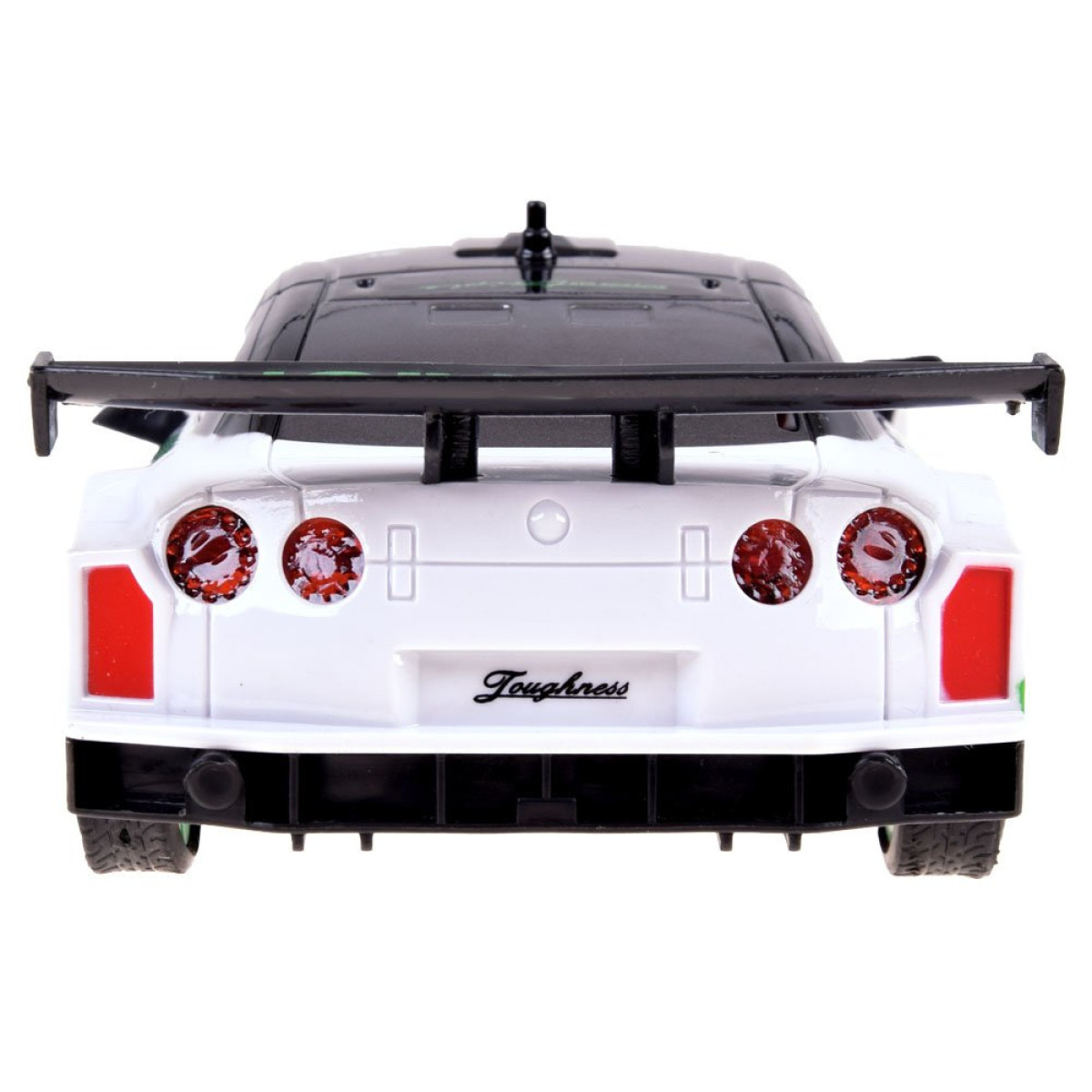 Žaislas yra valdomas nuotoliniu būdu su 2,4 GHz dažnio pulteliu, kuris turi integruotą anteną. Galite važiuoti pirmyn, atgal, sukti į dešinę ir kairę. Komplekte yra papildomi atsarginiai ratai ir kūgių rinkinys, skirtas sukurti nuostabius lenktynių ar drift trasas.