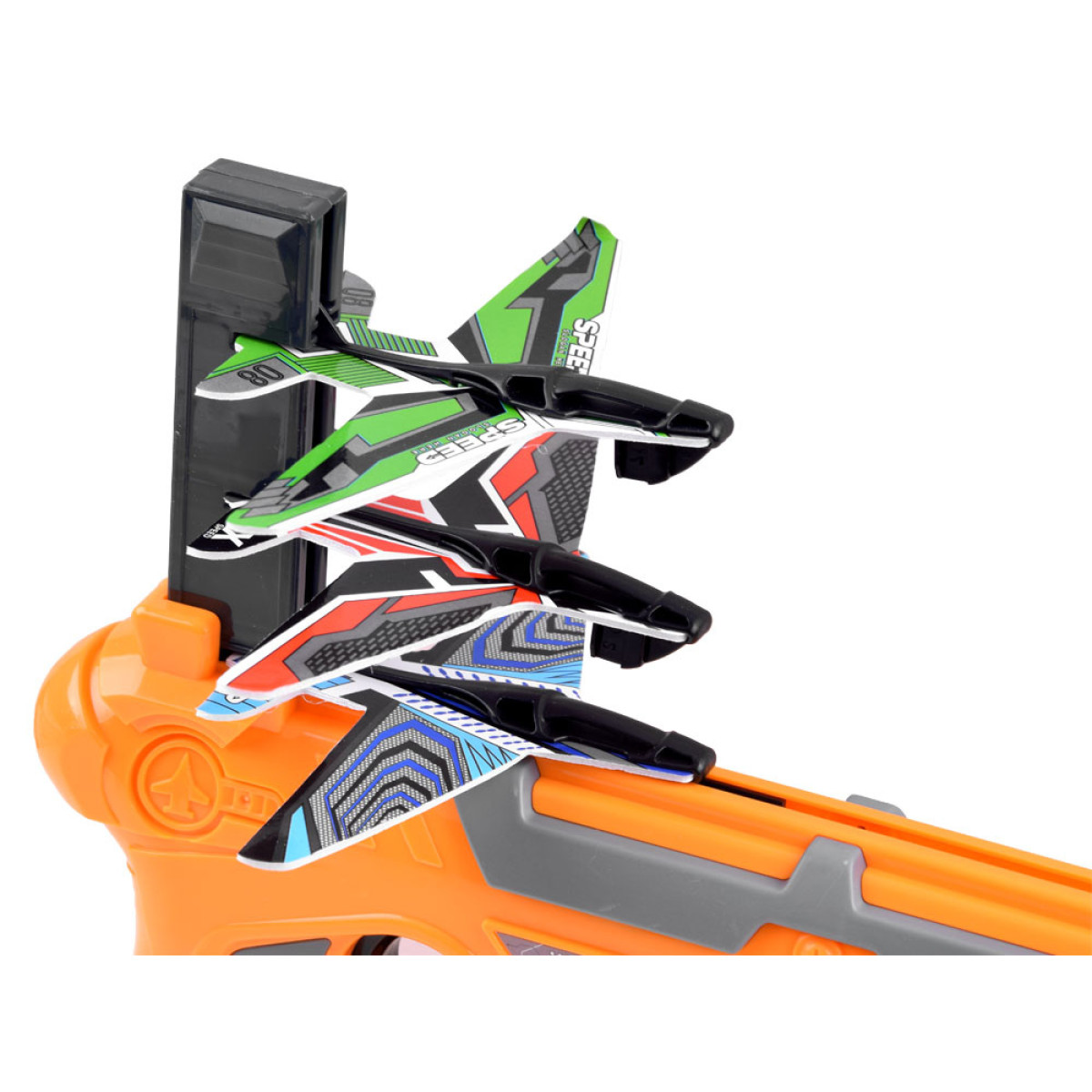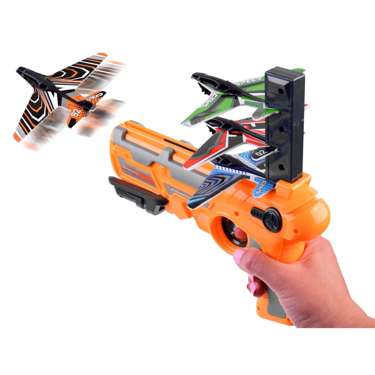 Didelis lėktuvų paleidimo pistoletas yra mūsų naujausias pasiūlymas. Paleidimo pistoletas turi talpą, kurioje galima įkrauti tris lėktuvus. Norint iššauti lėktuvą, kaskart reikia pertaisyti pistoleto talpą. Po kiekvieno šūvio talpa nusileidžia, todėl galima iššauti net tris lėktuvus per vieną seriją. Pistoletas pagamintas iš lengvo plastiko, o lėktuvėliai – iš EPP putplasčio. Dėl lengvumo lėktuvėlis gali skristi keliolika metrų. Kiekvienas šaudymo varžybų gerbėjas, turintis tokią paleidimo sistemą, galės treniruotis ilgiausiems skrydžiams ir vėliau rengti varžybas su draugais.