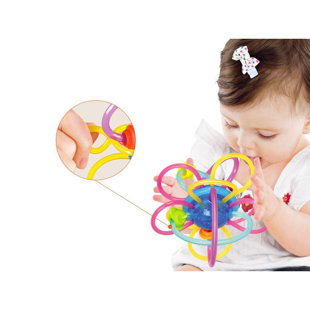 Dėka lanksčių elementų, vaikas be vargo laikys žaislą rankose. Glotnus ir minkštas elastingų detalių paviršius puikiai tinka dantenų masažui. Spalvingi karoliukai ant lanksčių sriegių lengvai slenka per žaislą.