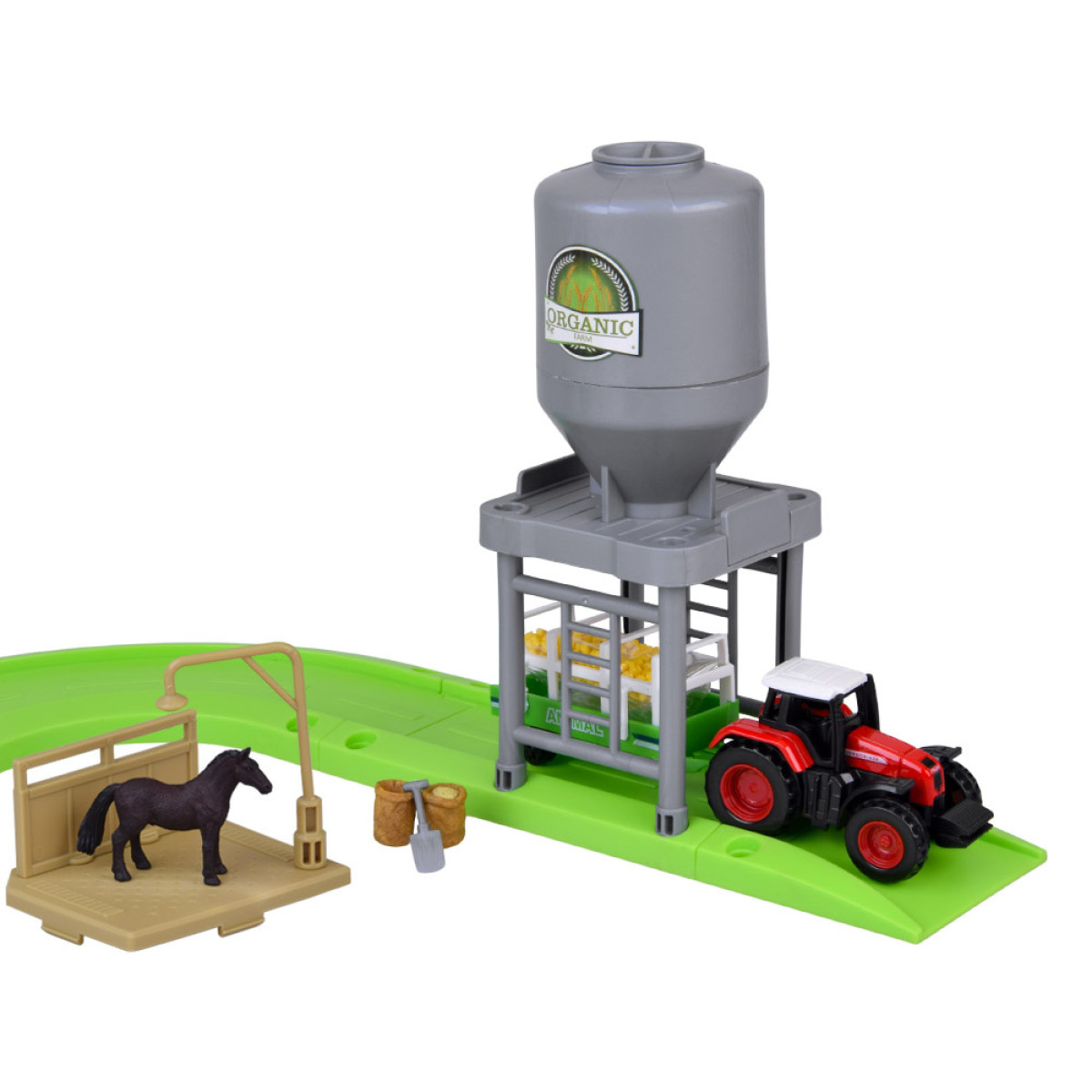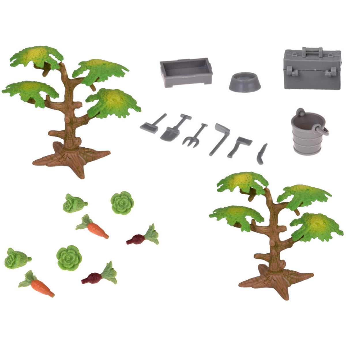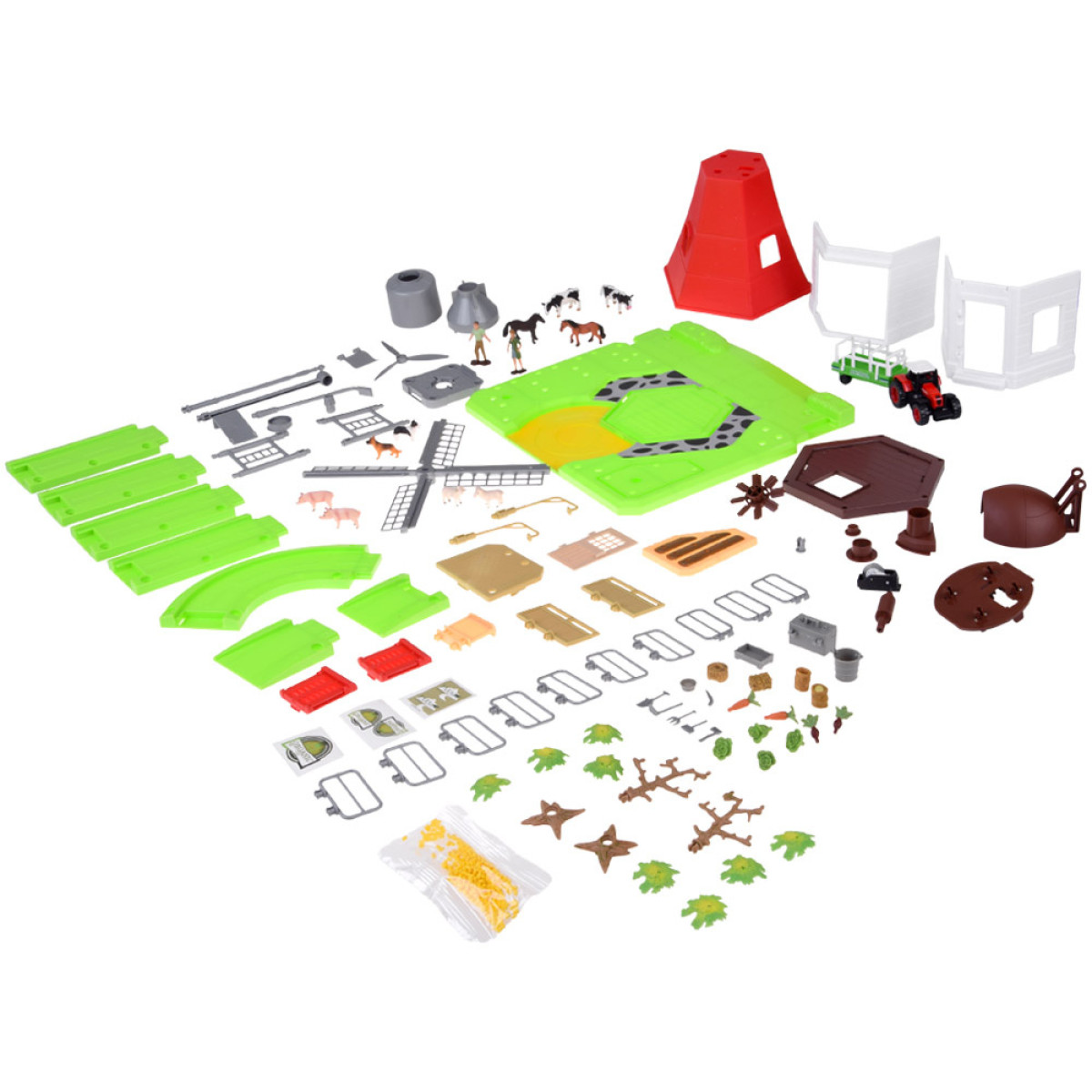 Bet tai dar ne viskas! Rinkinys taip pat turi traktorių su priekaba, gyvūnų ir ūkininkų figūrėles bei papildomus ūkio elementus. Šis gausiai įrengtas rinkinys leidžia atkurti įvairias scenarijus ir kurti skirtingas istorijas.