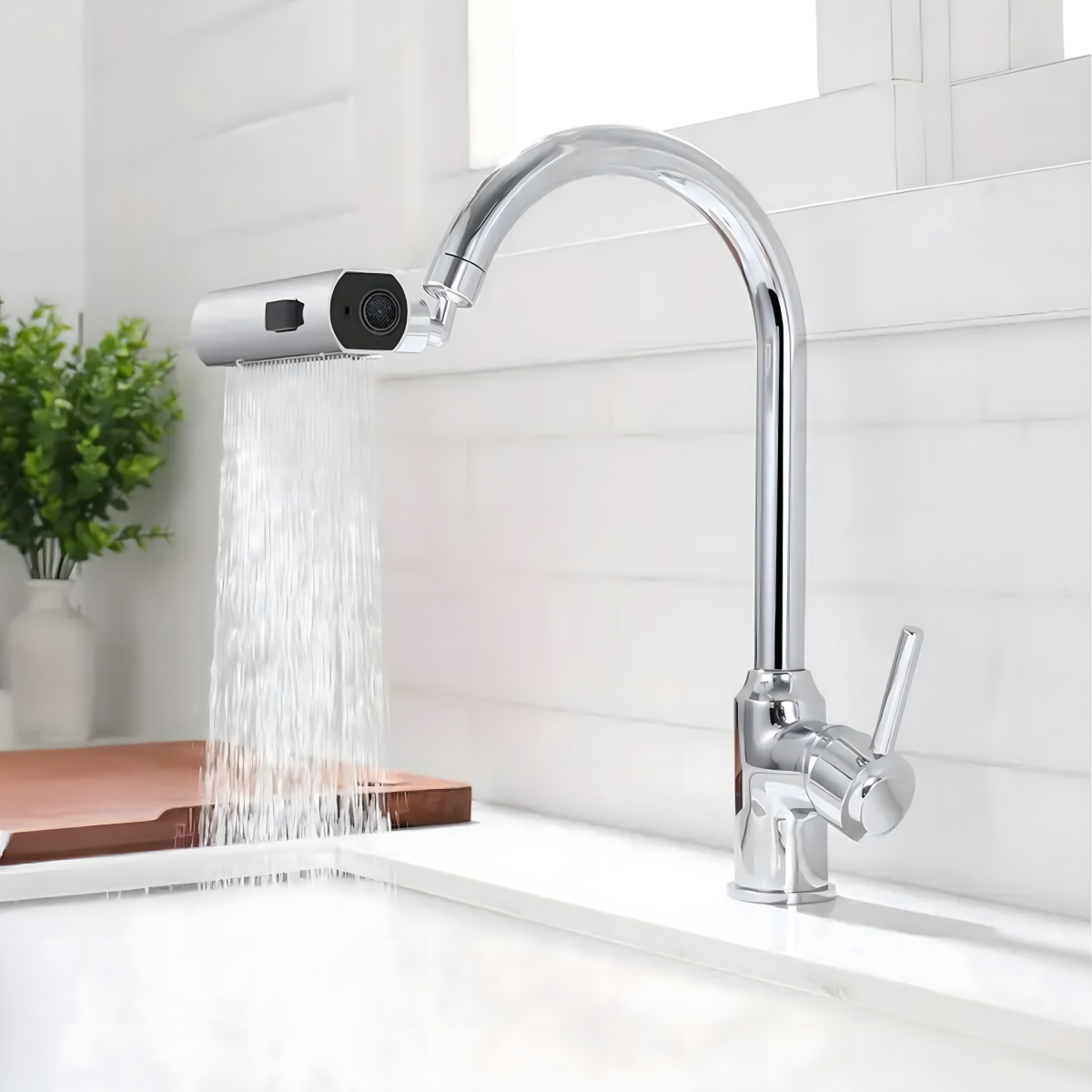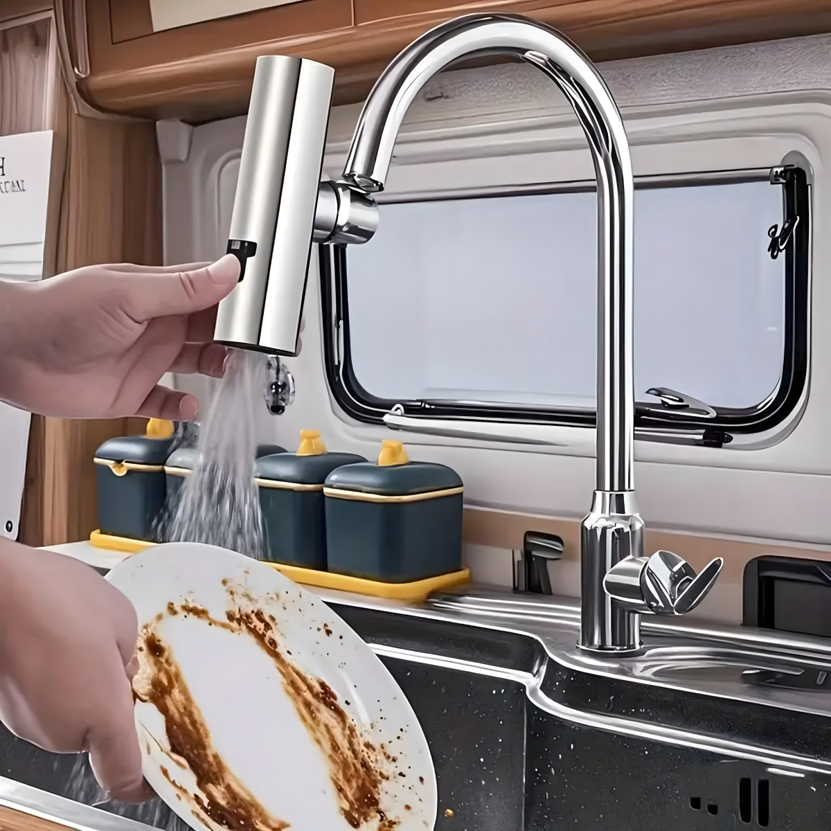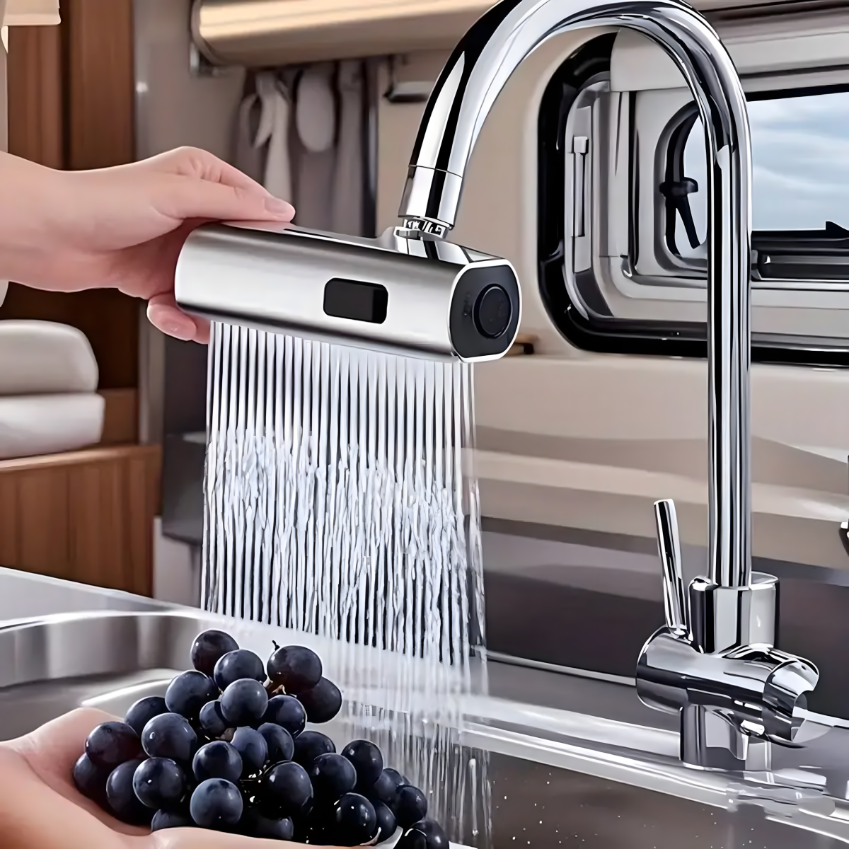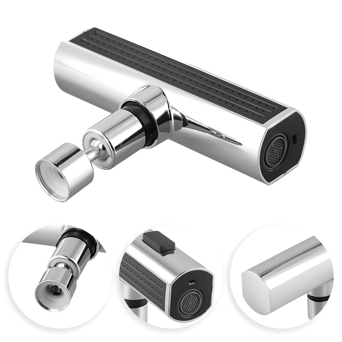 Praktiškas priedas virtuviniam maišytuvui, leidžiantis patogiai reguliuoti vandens srovę. Įrengtas perlatorius vandens taupymui ir adapteris, tinkantis daugumai kranų. Trys srovės funkcijos: švelni dulksna, stipri srovė ir purkštuvas – idealūs indų, daržovių plovimui ir skalavimui. Paprastas montavimas ir tvirta konstrukcija užtikrina komfortą kasdieniam naudojimui.