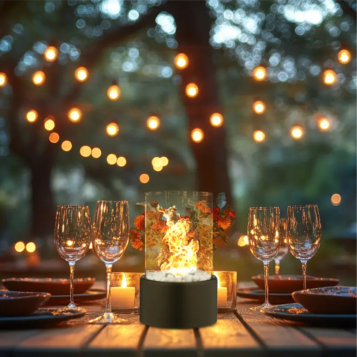 Tikras liepsna be dūmų ir suodžių! Stilinga dekoracija namams, terasai, balkonui ar restoranui. Saugus, mobilus ir lengvai naudojamas – nereikia kamino ar montavimo. Veikia su švariu bioetanoliu (neįtrauktas į komplektą). Puikiai tinka romantiškiems vakarams ir jaukiai atmosferai visus metus.