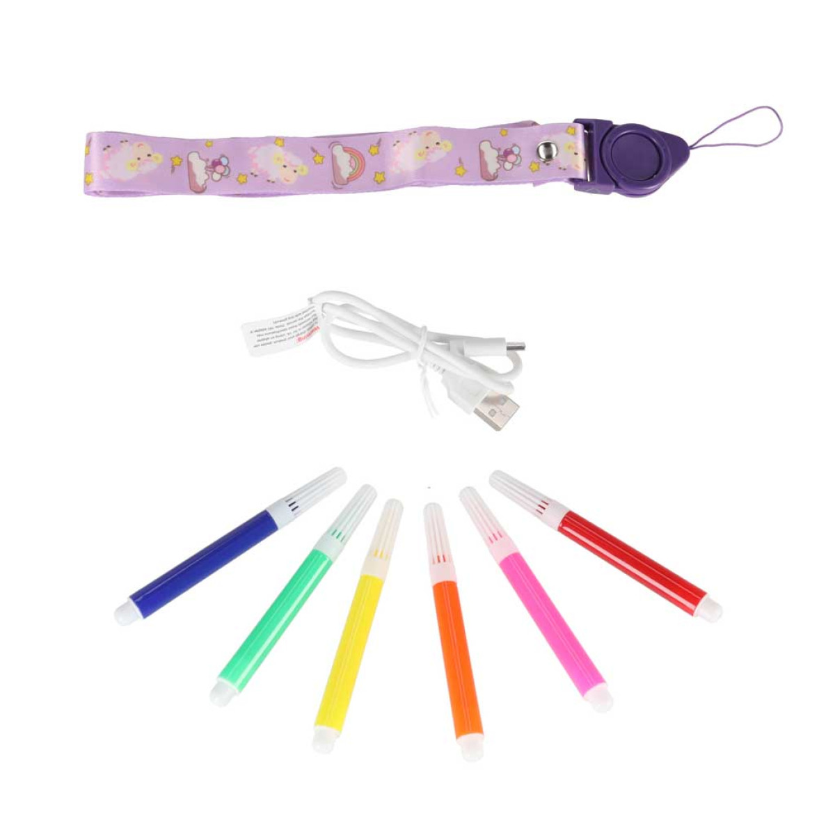- 6 mini žymekliai (8,5 cm) - raudonas, rožinis, oranžinis, geltonas, žalias, mėlynas