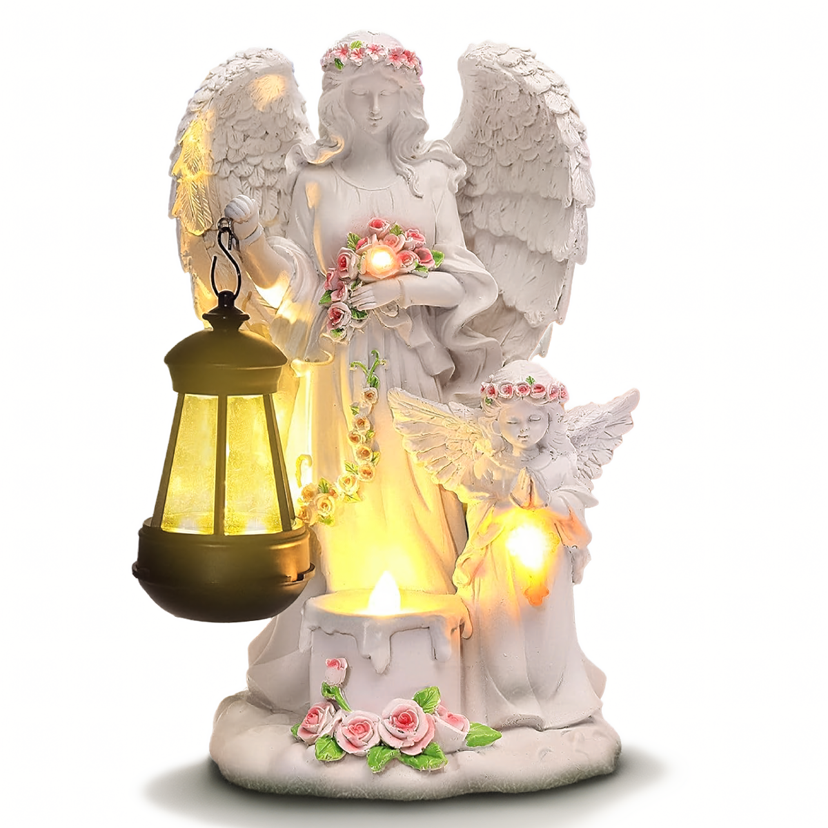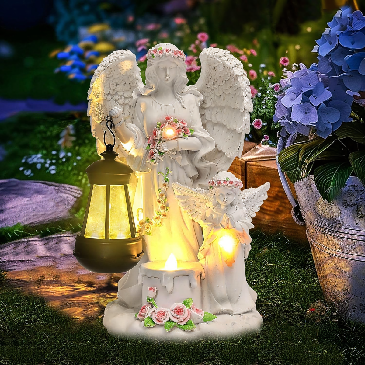 Puiki dekoracija sodui – angelo figūrėlė su saulės energija maitinamomis LED lemputėmis. Šis produktas yra idealus pasirinkimas tiek vidaus, tiek lauko aplinkai.