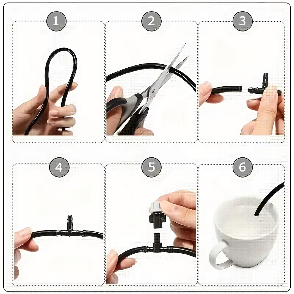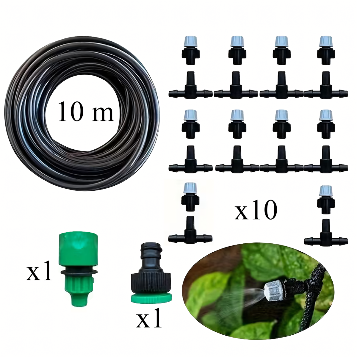 Atraskite paprastą ir efektyvų būdą, kaip atvėsinti savo sodą, terasą, balkoną ar šiltnamį! Šis purkštukų rinkinys – vandens uždanga 10 m – sukuria malonią miglą, kuri mažina temperatūrą, didina drėgmę ir užtikrina komfortą net ir pačiuose karščiausiuose oruose.