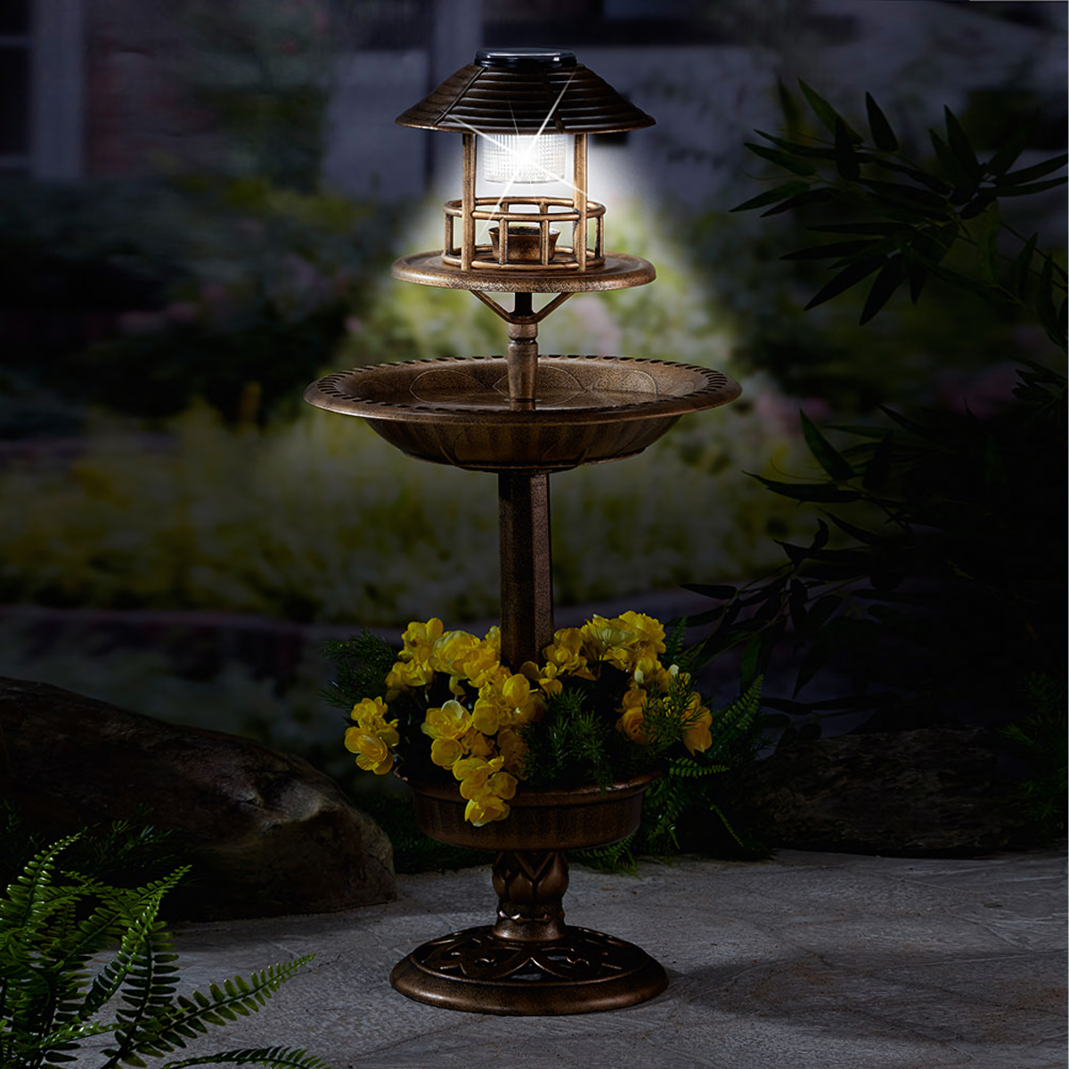 Ši graži sodo dekoratyvinė lempa su saulės baterijomis ne tik apšviečia jūsų sodą, bet ir suteikia paukščiams maitinimosi vietą. Privalumai: ekonomiškas energijos naudojimas, lengvas montavimas, ilgaamžis dizainas, atsparus oro sąlygoms. Nauda: taupo elektros energiją, pritraukia paukščius, puošia sodą.