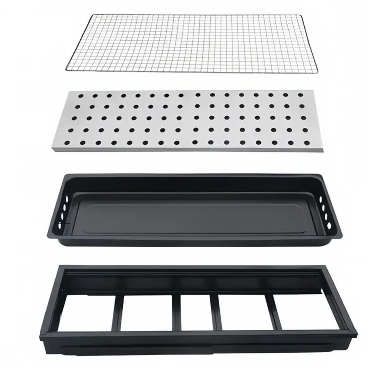 - Apatinės grotelės ir anglių dėklas: patogiam kaitinimui ir optimaliam kepimui.