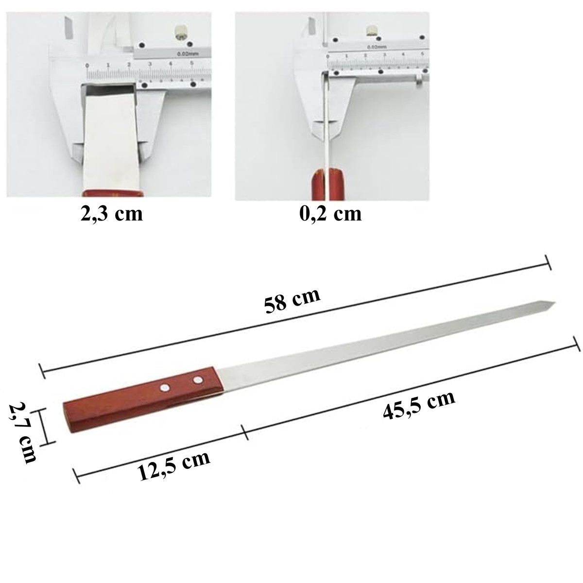 Iešmai griliui: metaliniai, su medine rankena, 5 vienetai, ilgis 58 cm.
