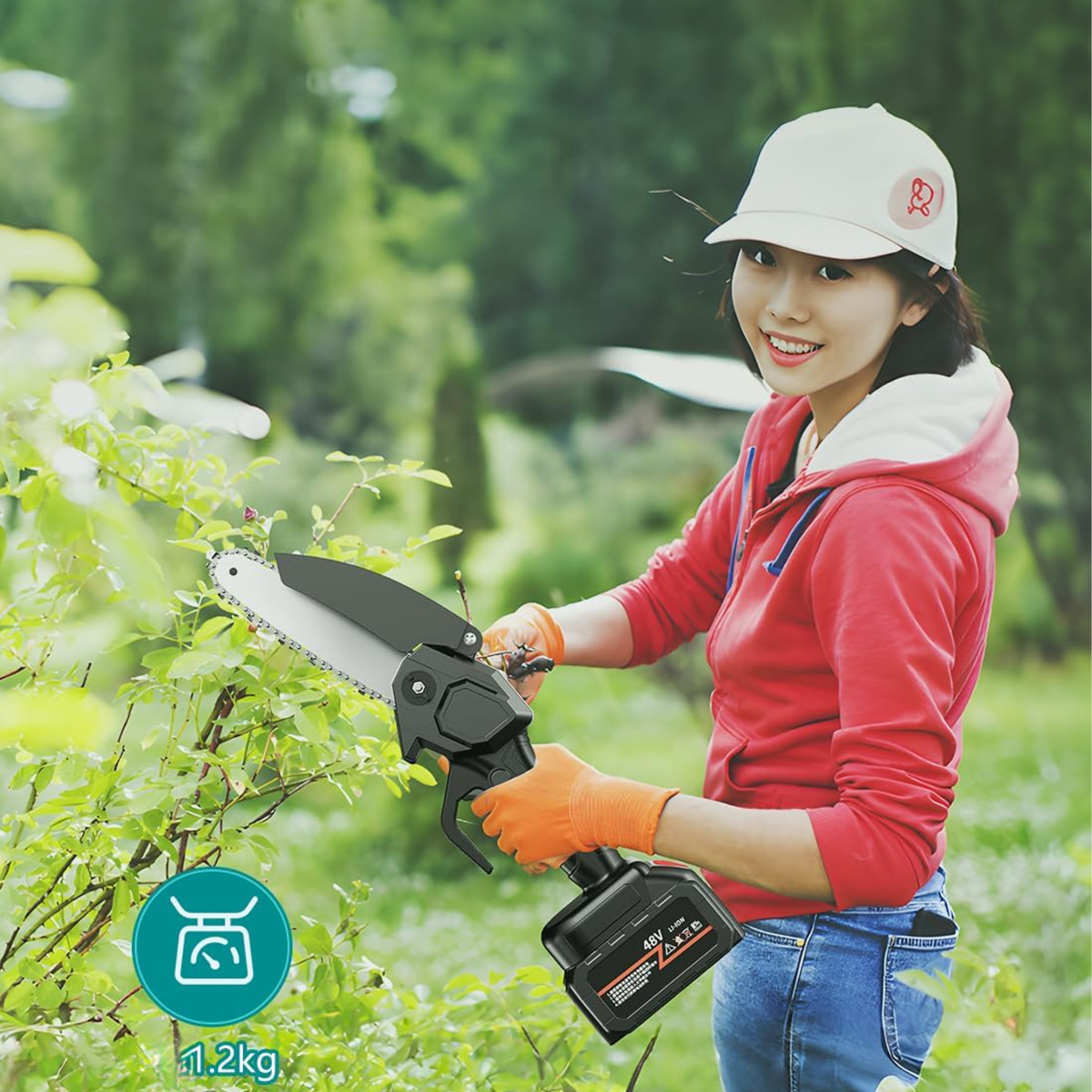 ✔️ Kompaktiškas, lengvas ir patogus: Mūsų akumuliatorinis pjūklas pasižymi kompaktišku dizainu, mažu svoriu ir lengvu transportavimu, todėl yra idealus įvairiems darbams sode ar ūkyje.