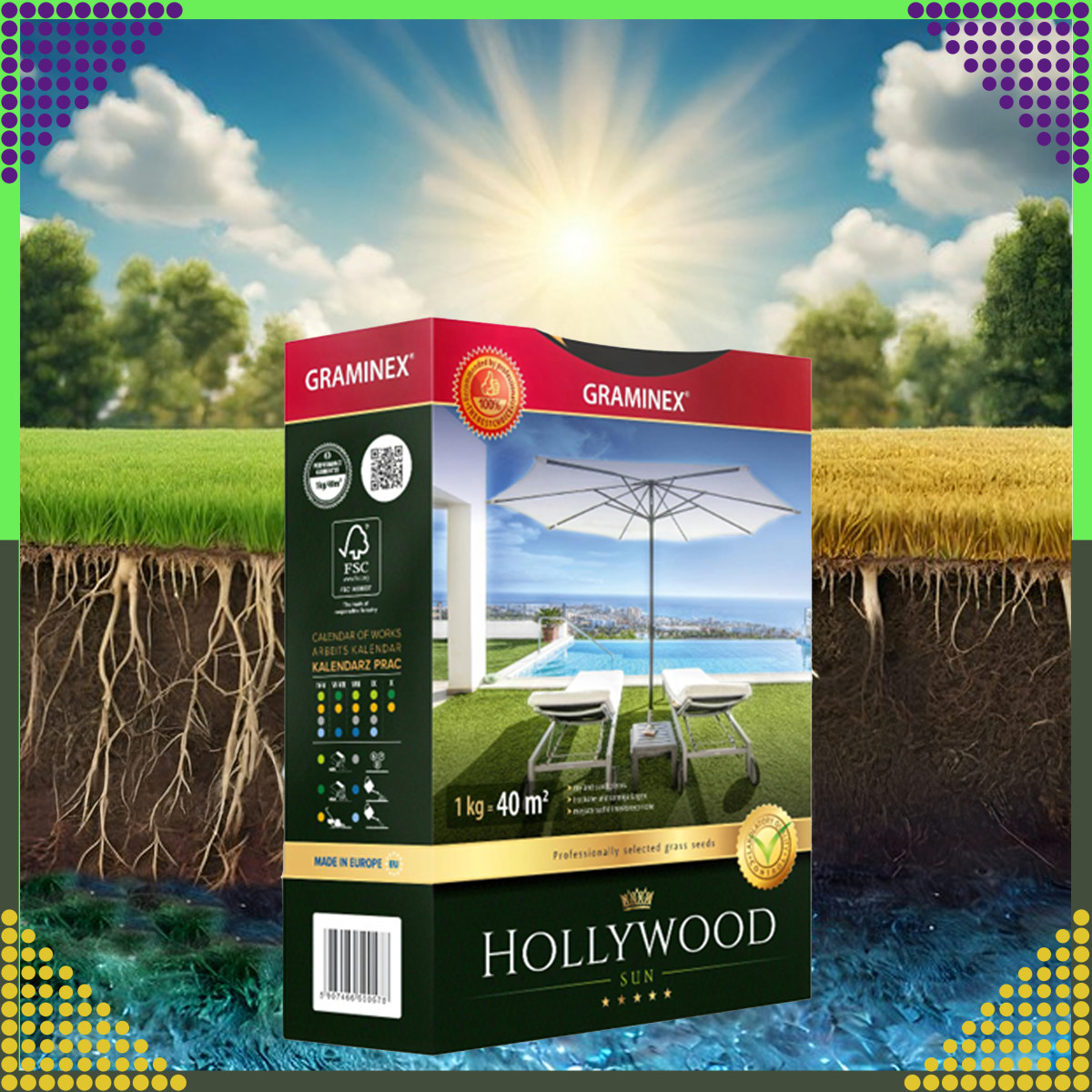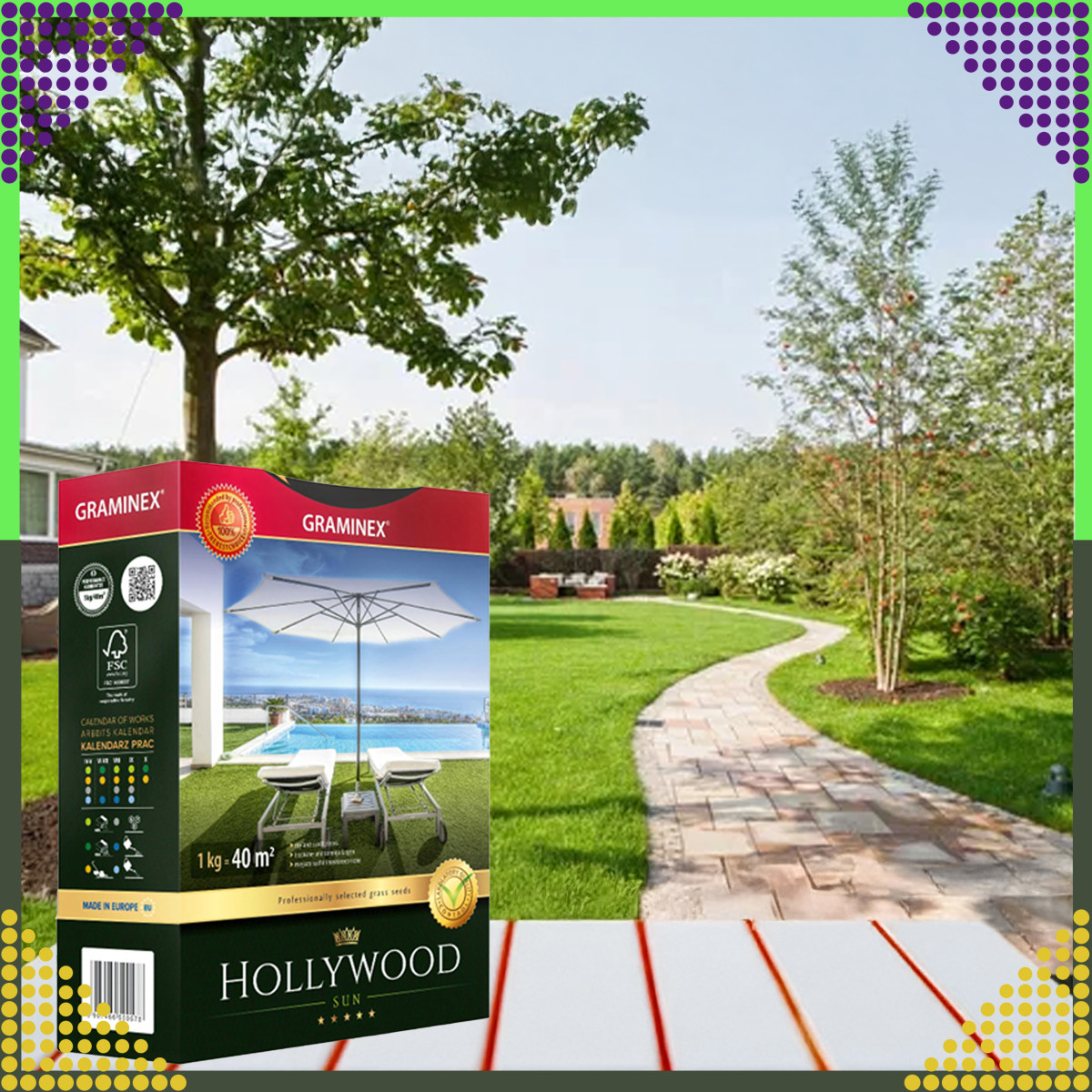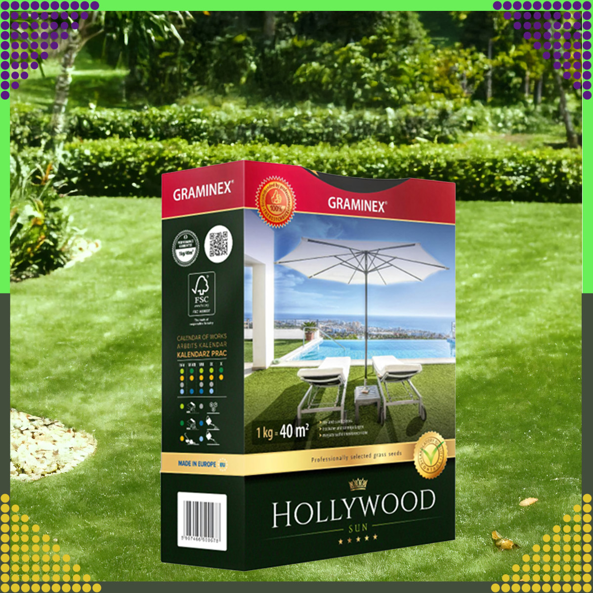 Premium vejos sėklų mišinys HOLLYWOOD 1kg skirtas saulėtoms ir sausoms vietoms.
