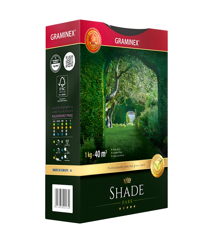 Premium žolės sėklų mišinys SHADE 1kg skirtas tamsioms vietoms, kur mažai saulės šviesos. Idealus sprendimas norint sukurti tankų ir žalią veją net ir šešėlinėse vietose.