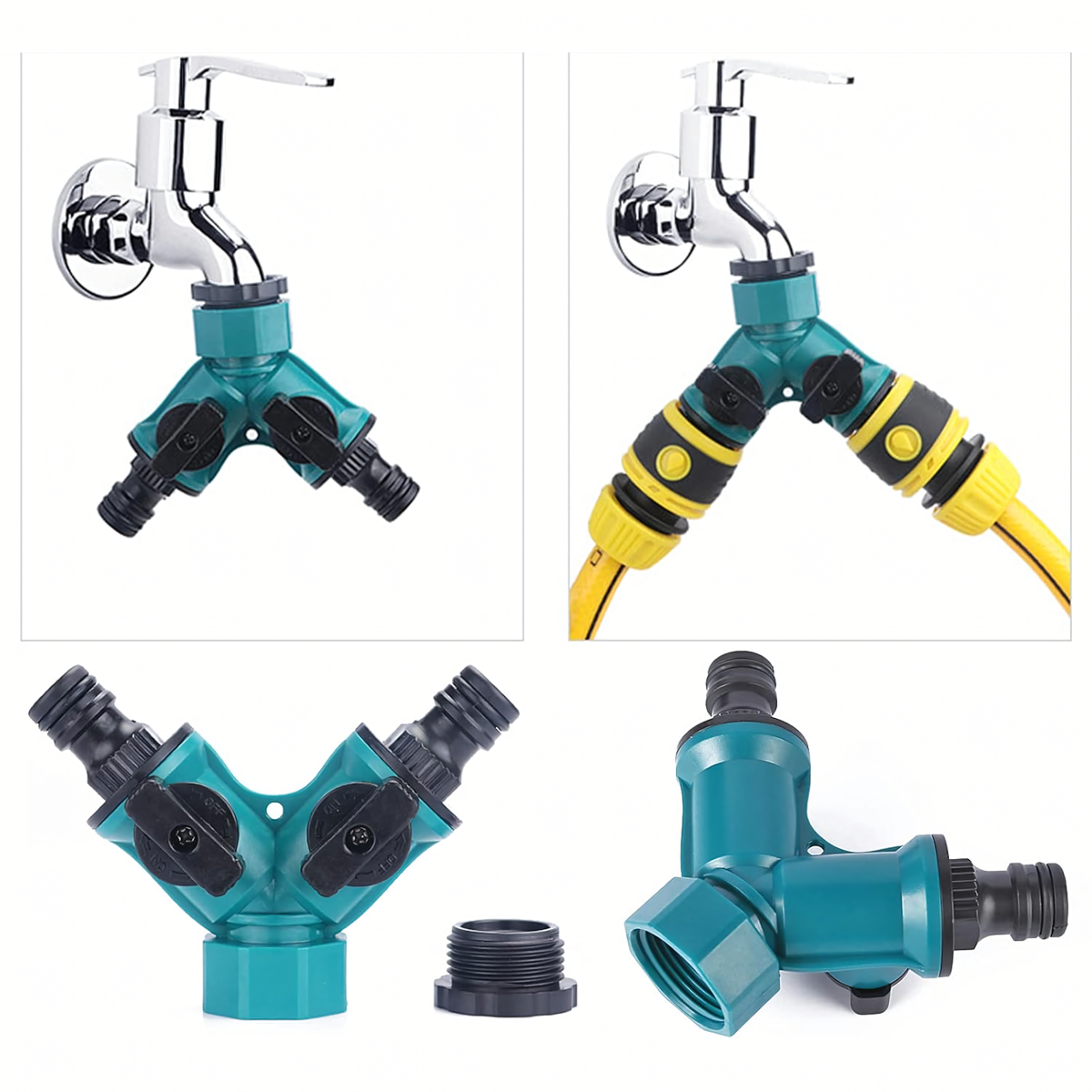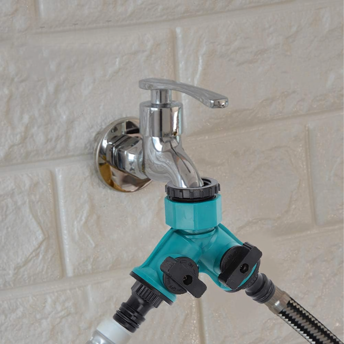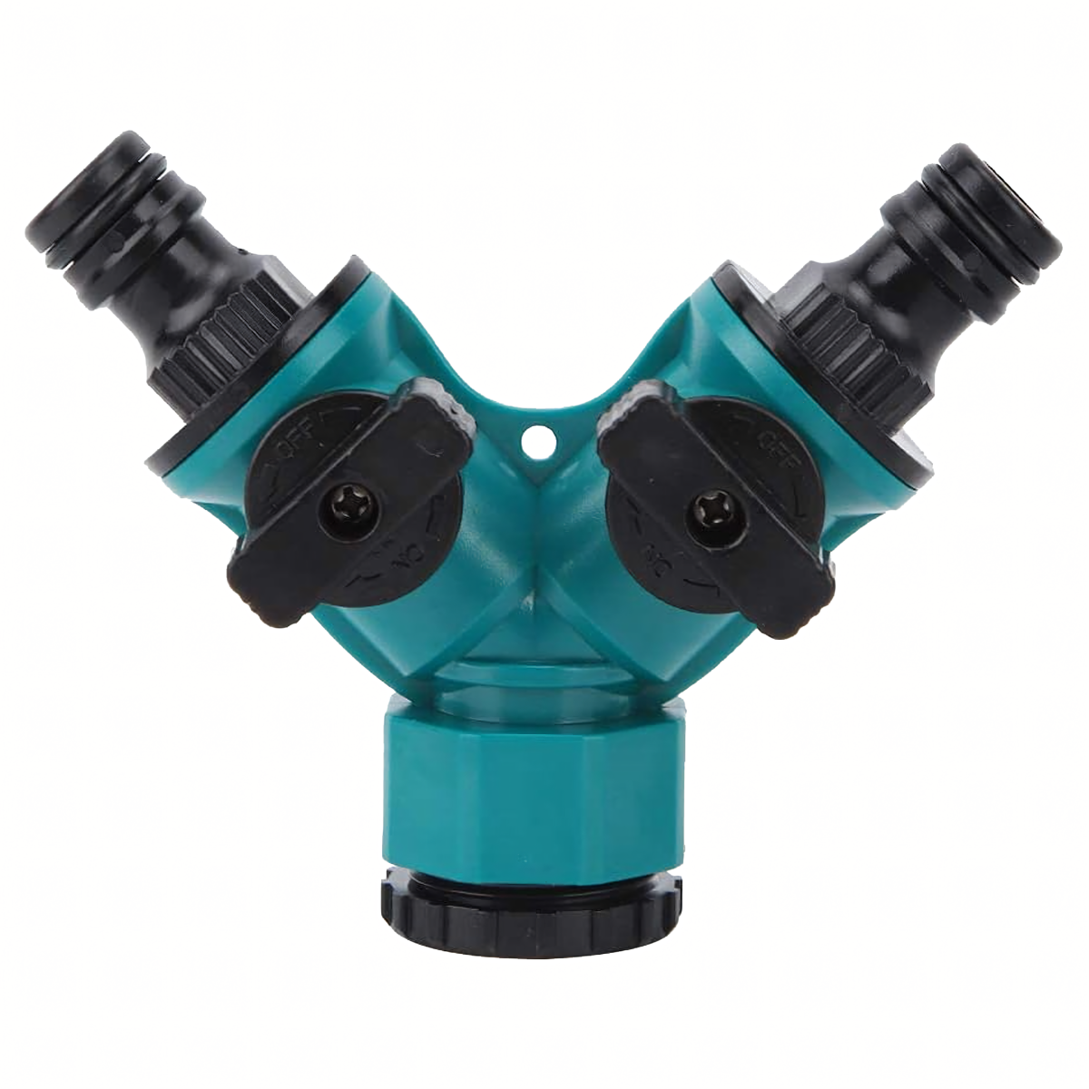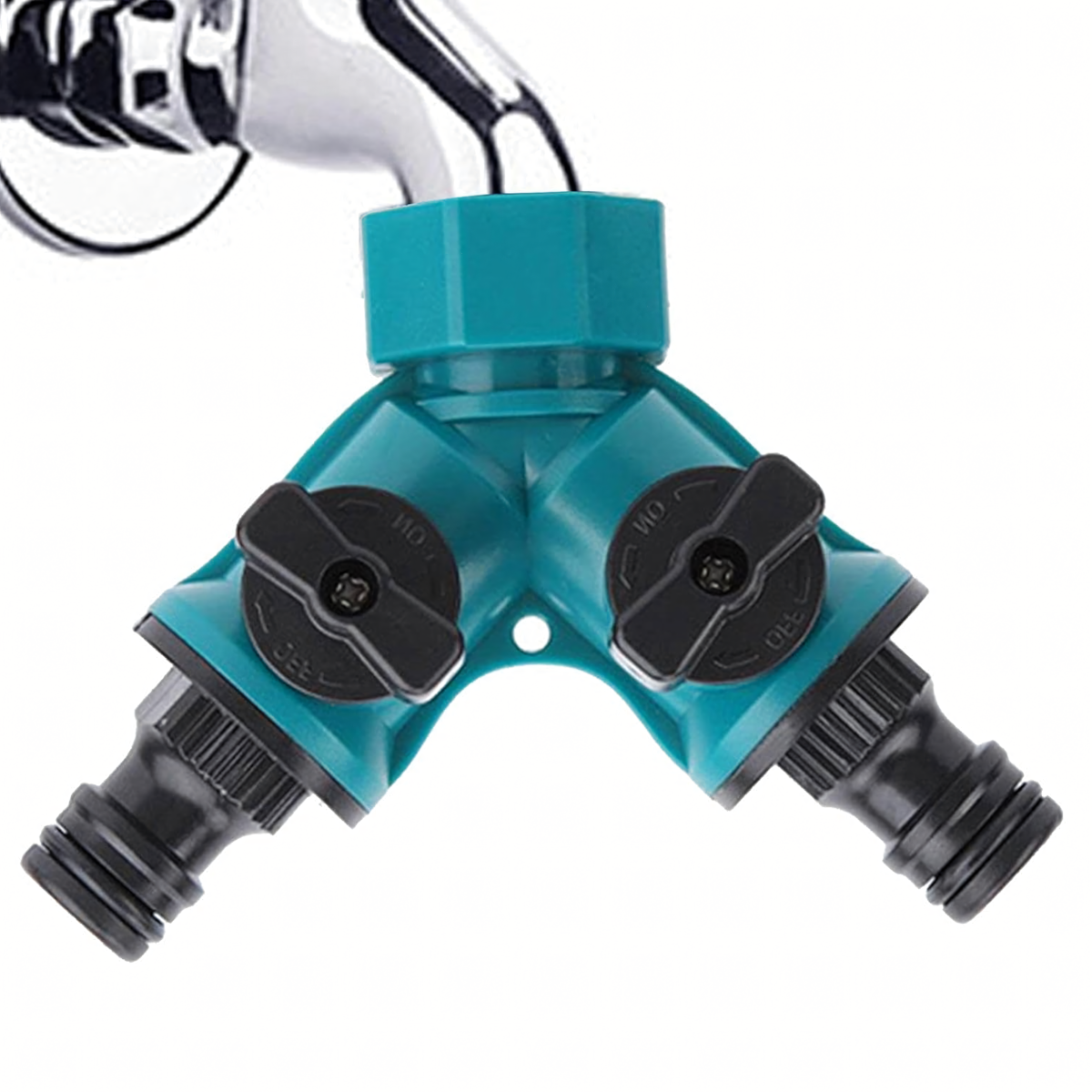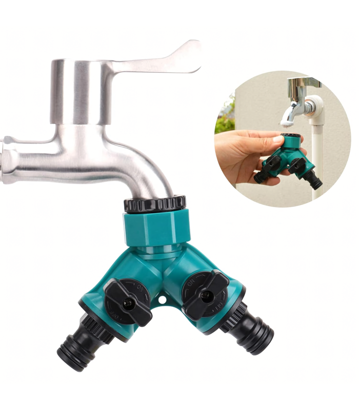 Praktiškas ir tvirtas krano skirstytuvas, leidžiantis prijungti dvi žarnas vienu metu ir patogiai valdyti vandens srautą. Idealus naudojimui sode, sodyboje ir drėkinimo sistemose.