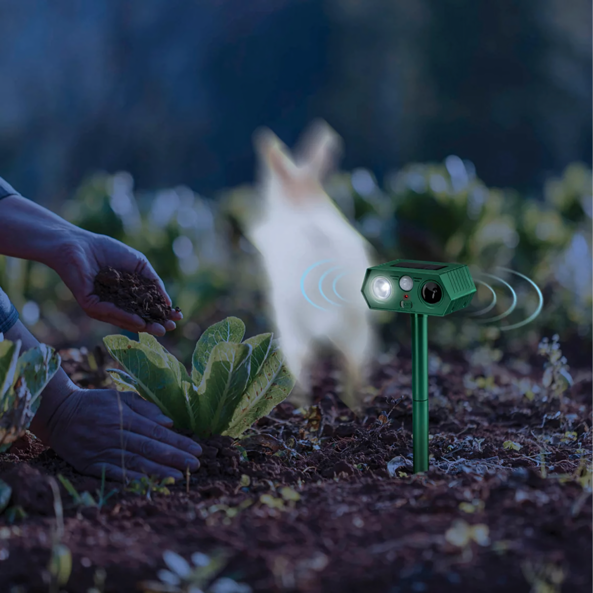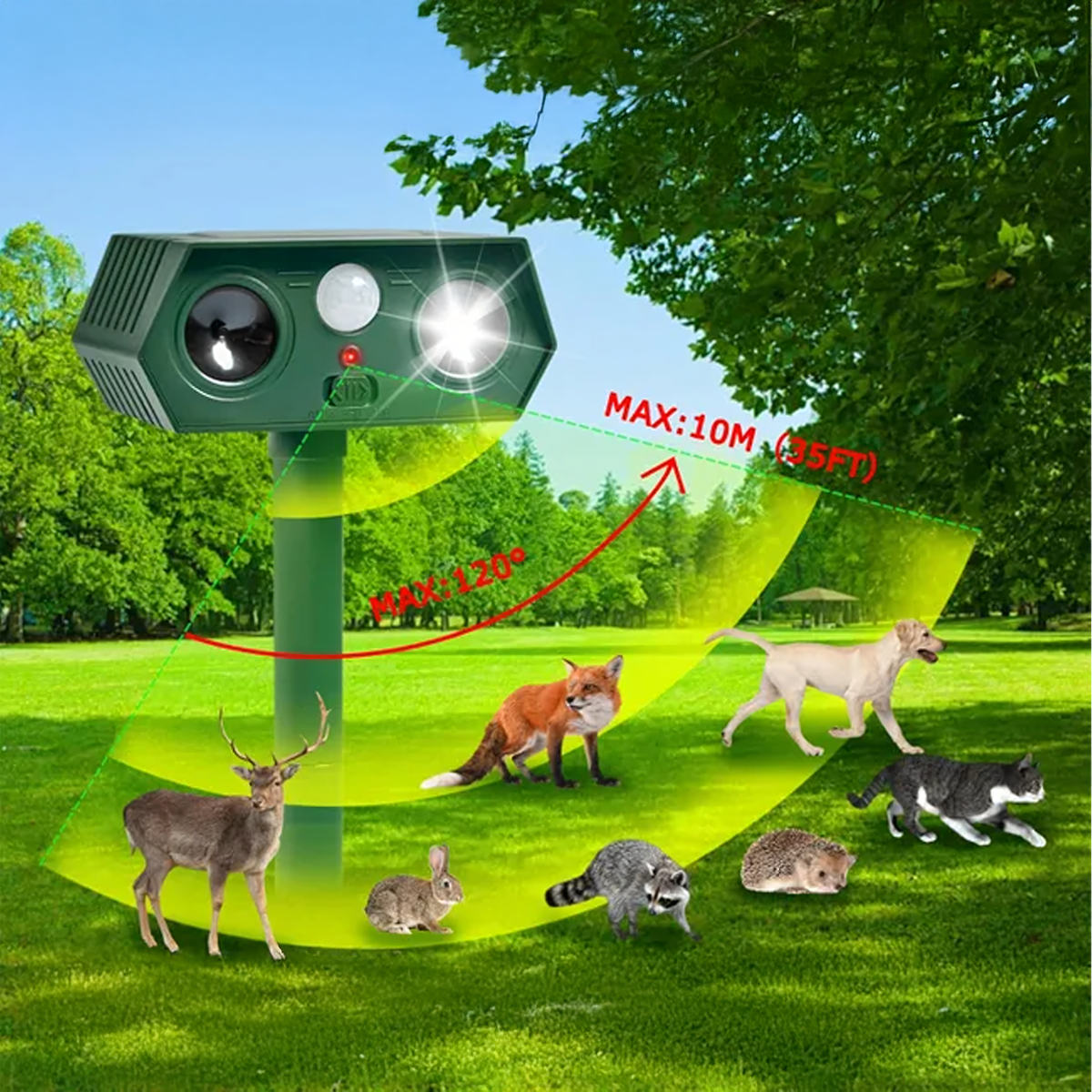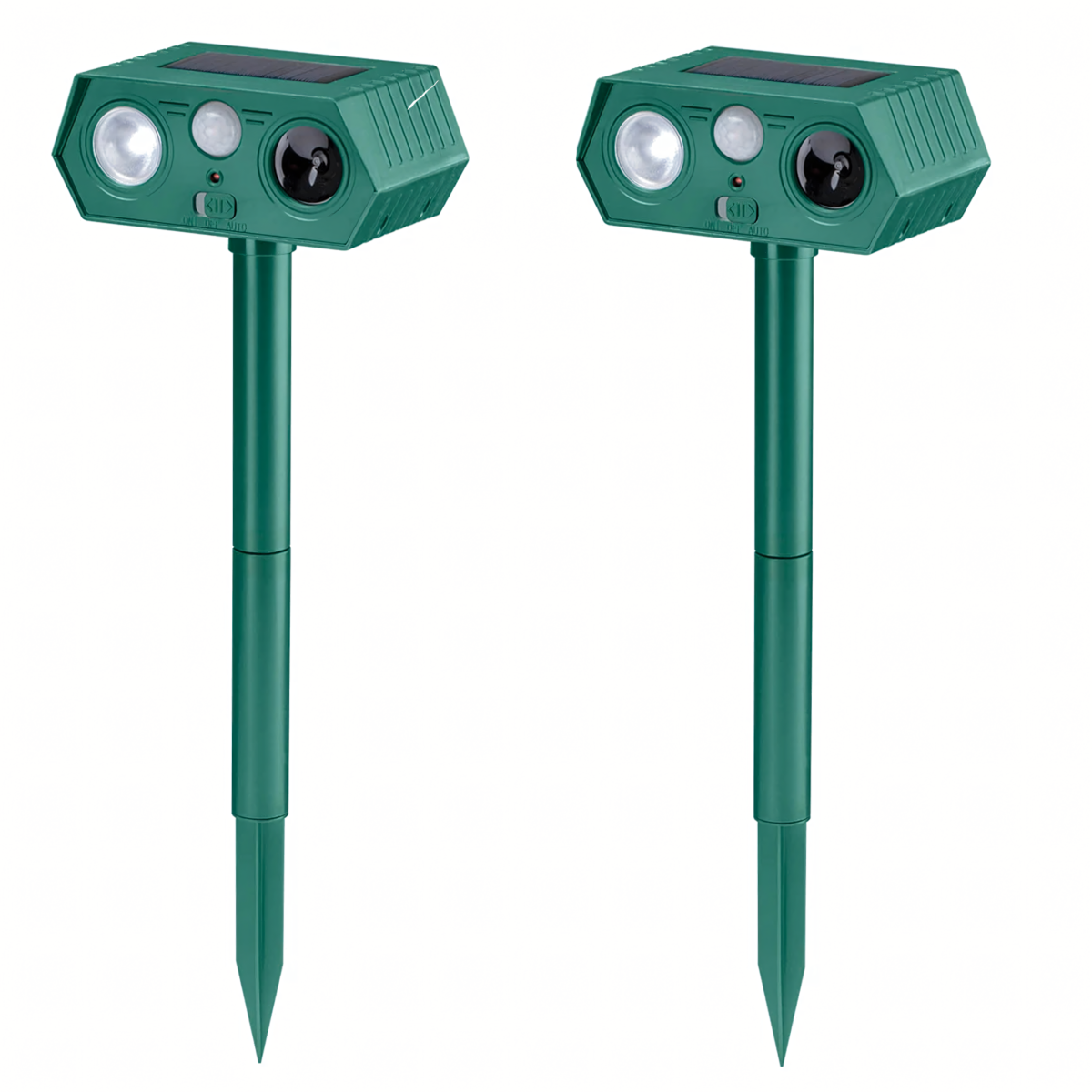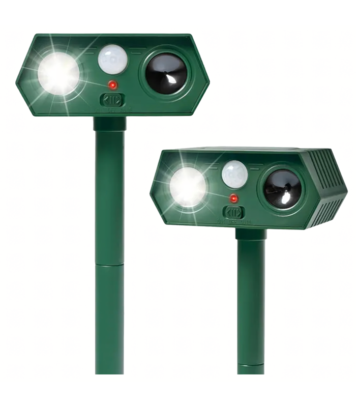 Ultragarsinis saulės energijos gyvūnų atbaidymo prietaisas – tai 2 vienetų rinkinys, kuris yra efektyvus, saugus ir humaniškas būdas apsaugoti sodą, kiemą ir teritoriją nuo nepageidaujamų gyvūnų. Prietaisas naudoja ultragarsą, aukšto dažnio garsus ir mirksinčią LED šviesą, kurios veiksmingai atbaido gyvūnus, nesukeliant jiems žalos. Dėl saulės energijos panelės ir judesio jutiklio jis veikia automatiškai ir be priežiūros.
