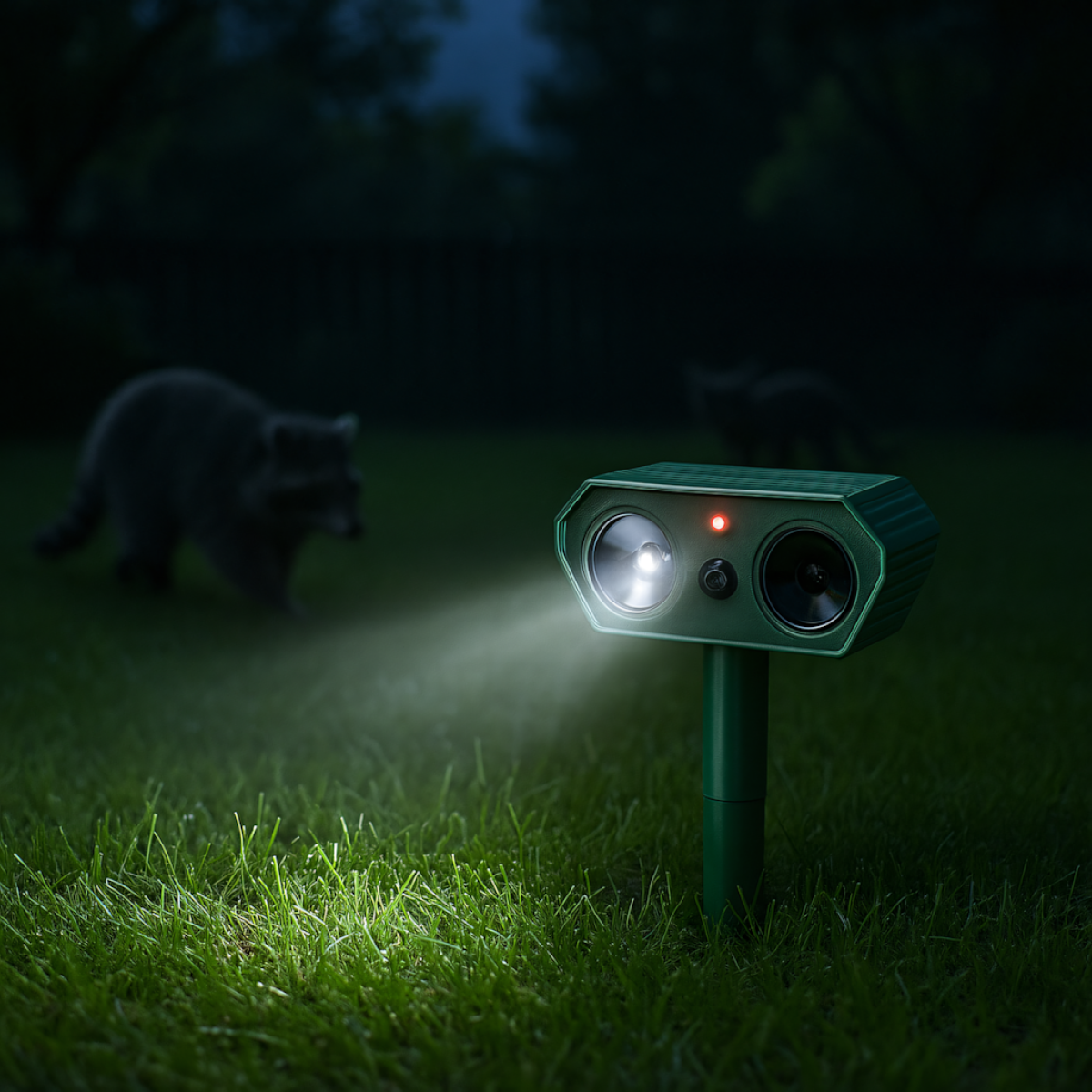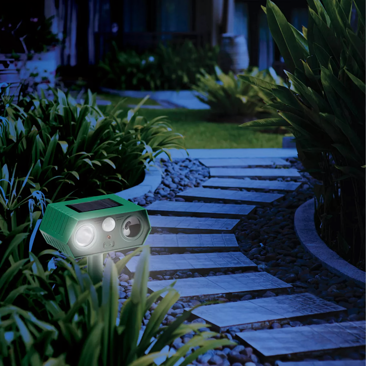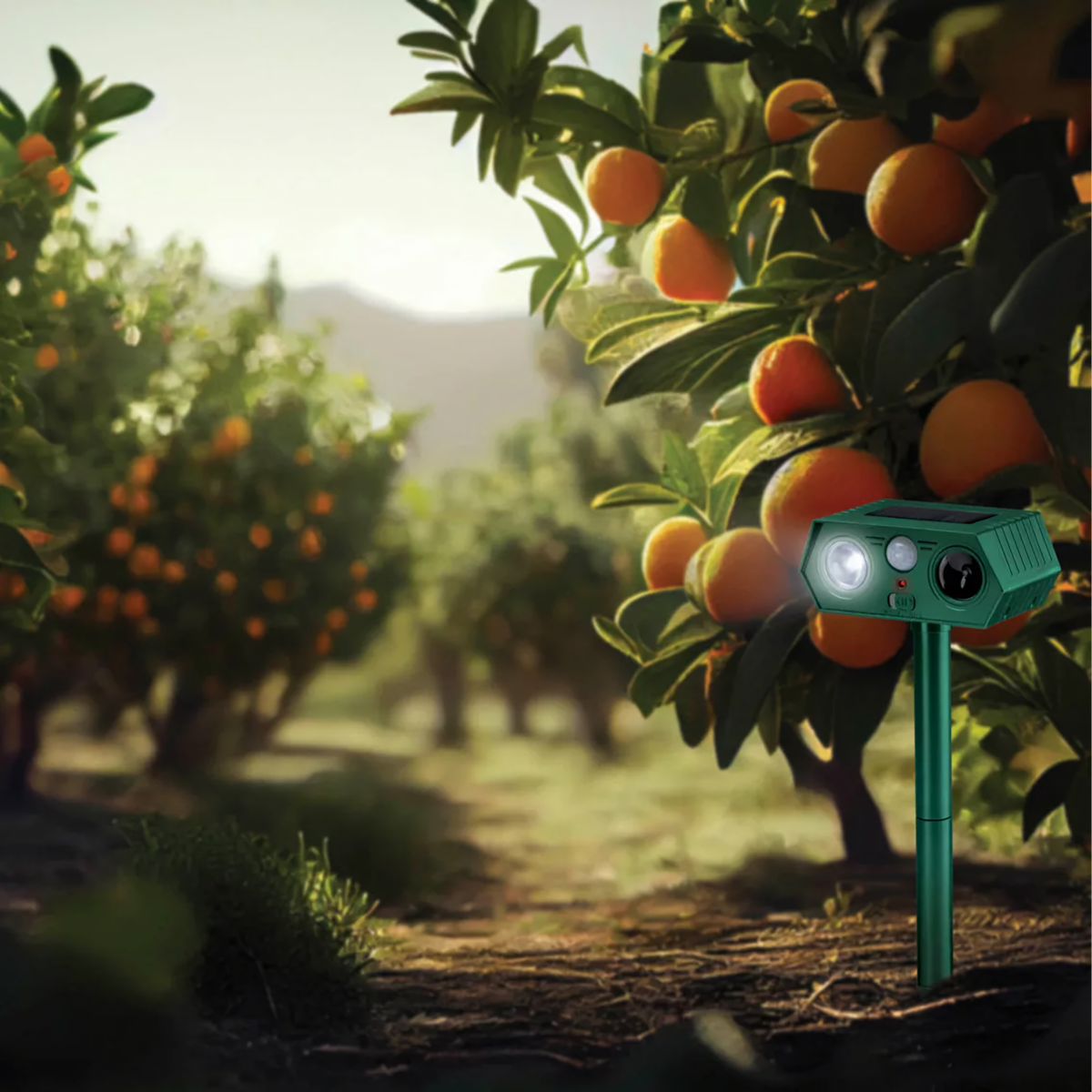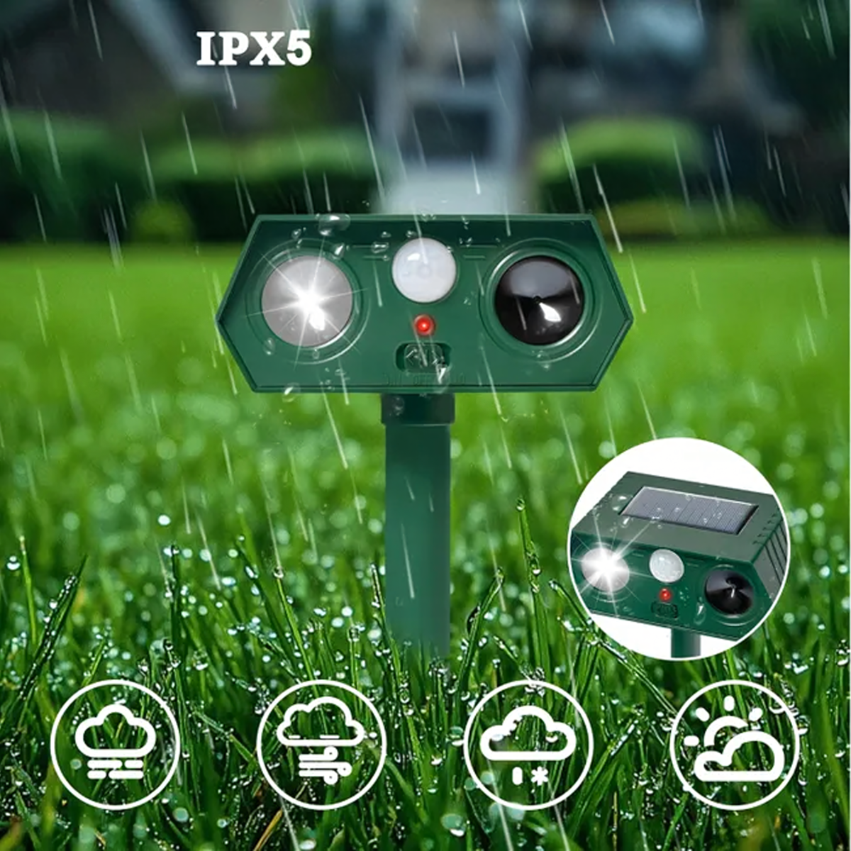 Ultragarsinis saulės energijos gyvūnų atbaidymo prietaisas – tai 2 vienetų rinkinys, kuris yra efektyvus, saugus ir humaniškas būdas apsaugoti sodą, kiemą ir teritoriją nuo nepageidaujamų gyvūnų. Prietaisas naudoja ultragarsą, aukšto dažnio garsus ir mirksinčią LED šviesą, kurios veiksmingai atbaido gyvūnus, nesukeliant jiems žalos. Dėl saulės energijos panelės ir judesio jutiklio jis veikia automatiškai ir be priežiūros.