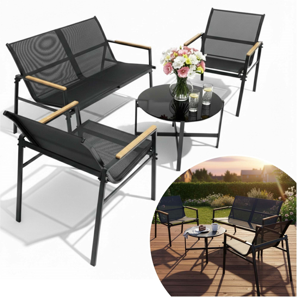 Sodo baldų komplektas tinka tiems, kurie ieško patikimų, patogių ir gražių lauko baldų kasdieniam poilsiui. Tai funkcionalus pasirinkimas sodui, terasai, balkonui ar kiemui.