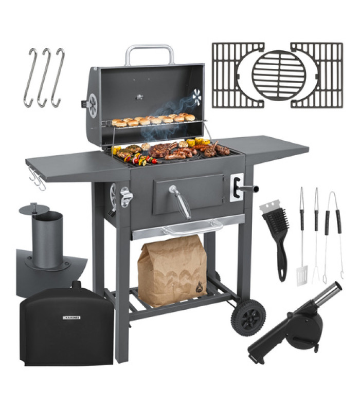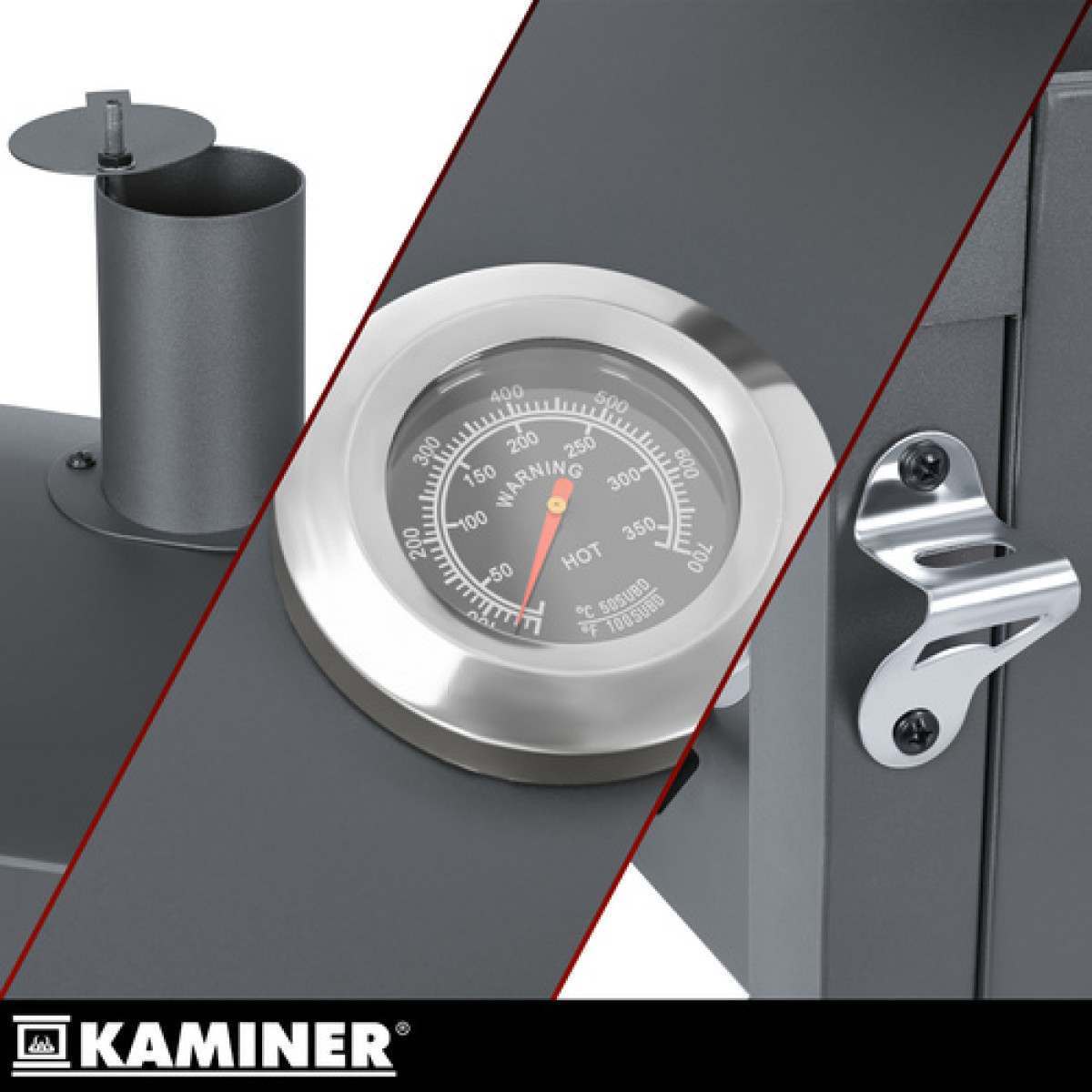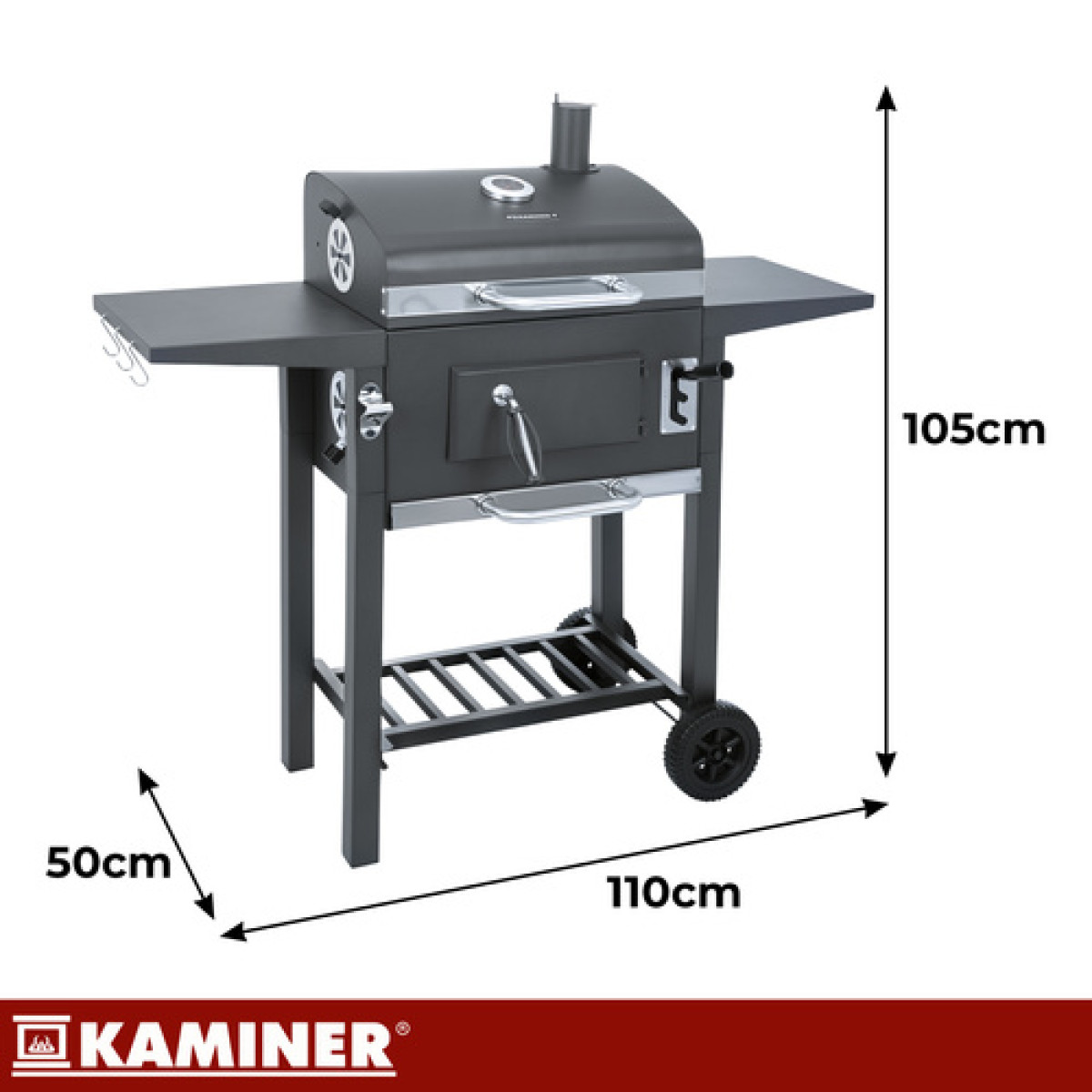 Jei pavargote nuo grilių, kurie po vieno sezono tampa nestabilūs, greitai praranda dangą ir prastai palaiko temperatūrą, šis sodo anglinis grilis yra patikimas pasirinkimas. Kaminer grilis turi tvirtas emaliuotas ketaus groteles, 1 mm storio skardą, dangtį su termometru ir 3 lygių pakūros aukščio reguliavimą, todėl lengviau pasieksite norimą kepimo rezultatą. Komplekte taip pat rasite naudingų priedų ir apsauginį uždangalą, kad grilis būtų visada paruoštas kitam kepimui sode, kieme ar terasoje.