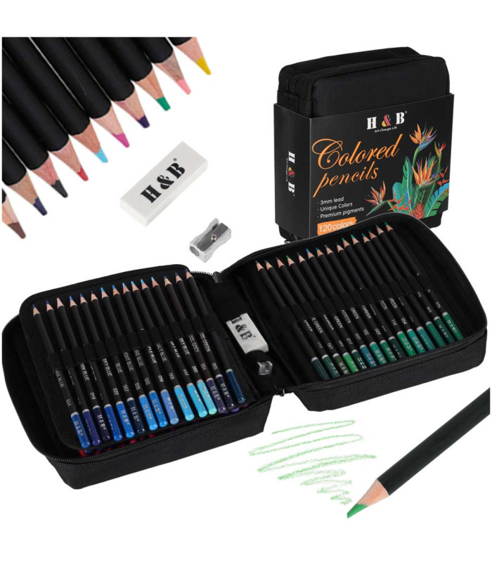 - Komplektas, kurį sudaro 120 spalvotų pieštukų patogiame etui