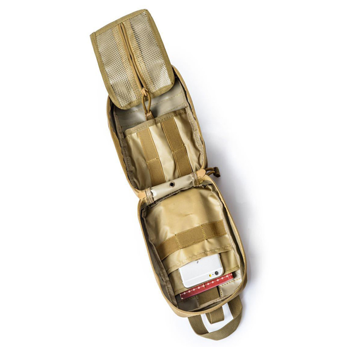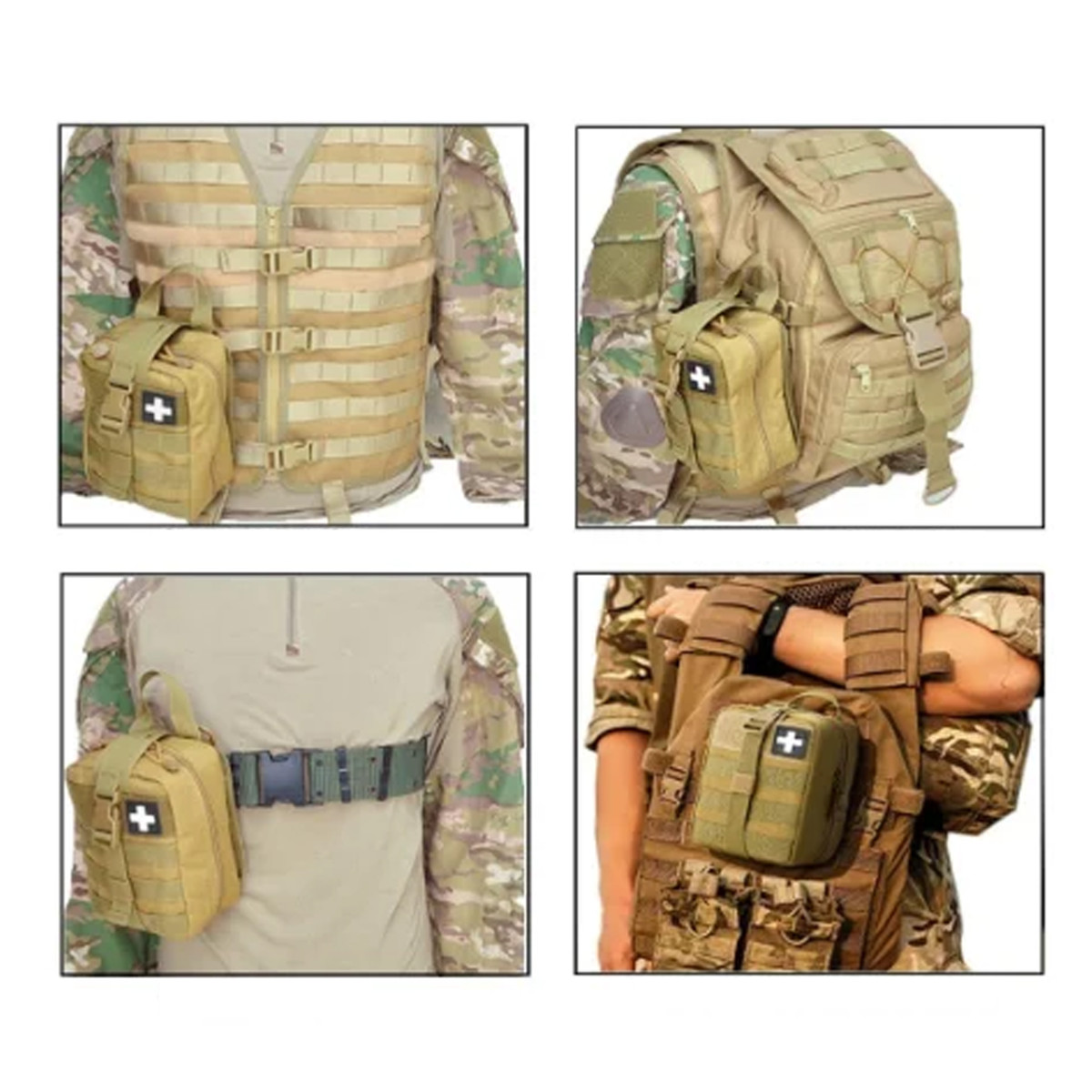 Ši vaistinėlė yra su MOLLE sistema, tai reiškia, kad ją galima pritvirtinti prie kuprinių, liemenių ir diržų. Taip pat, ji turi ventiliacijos angą pagrinde, kas padeda išlaikyti turinio šviežumą.
